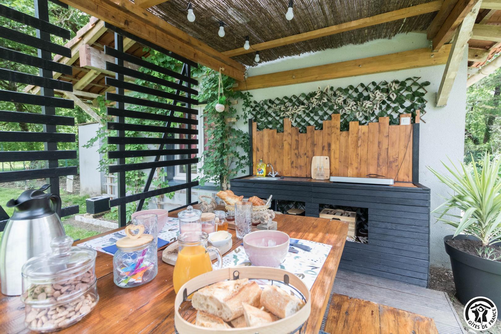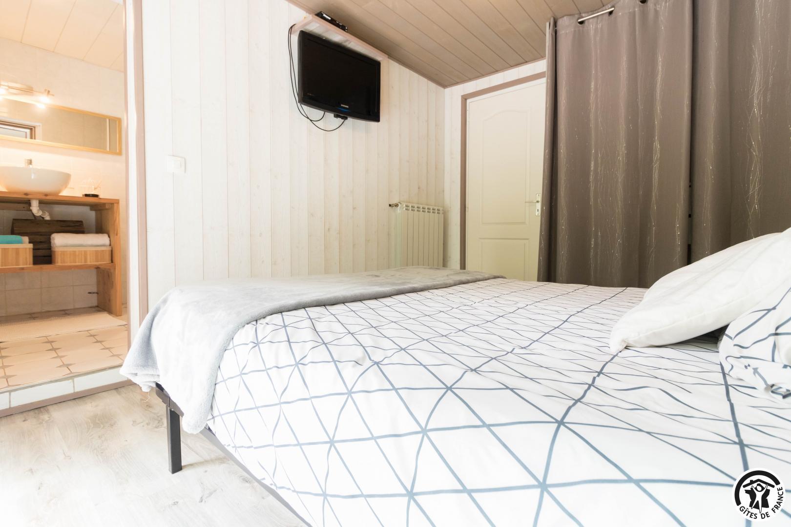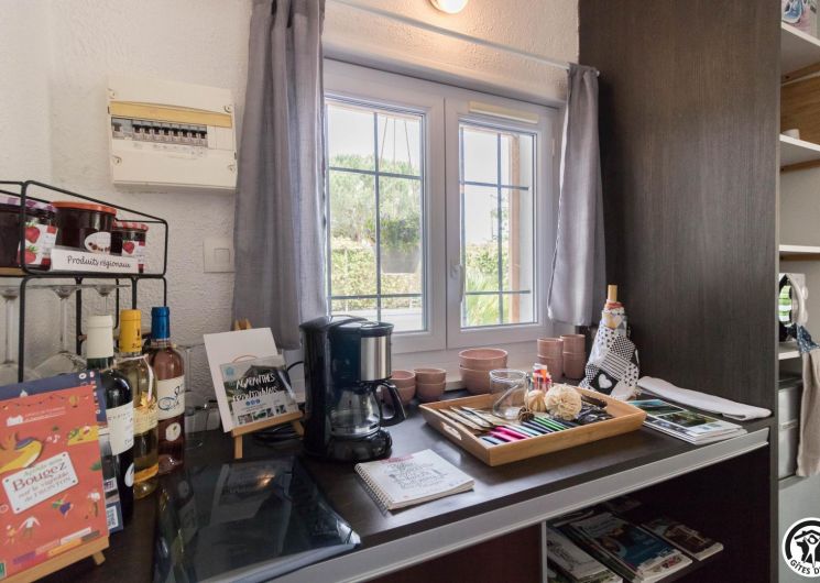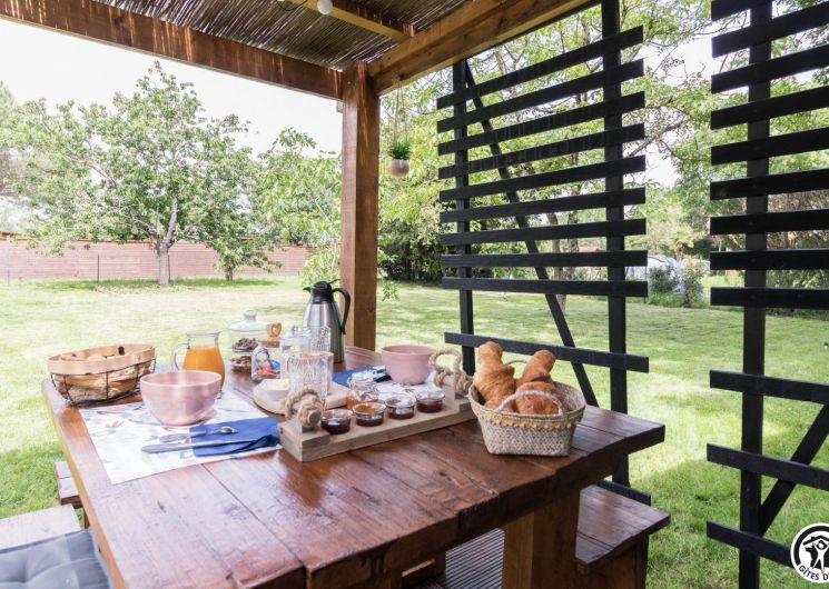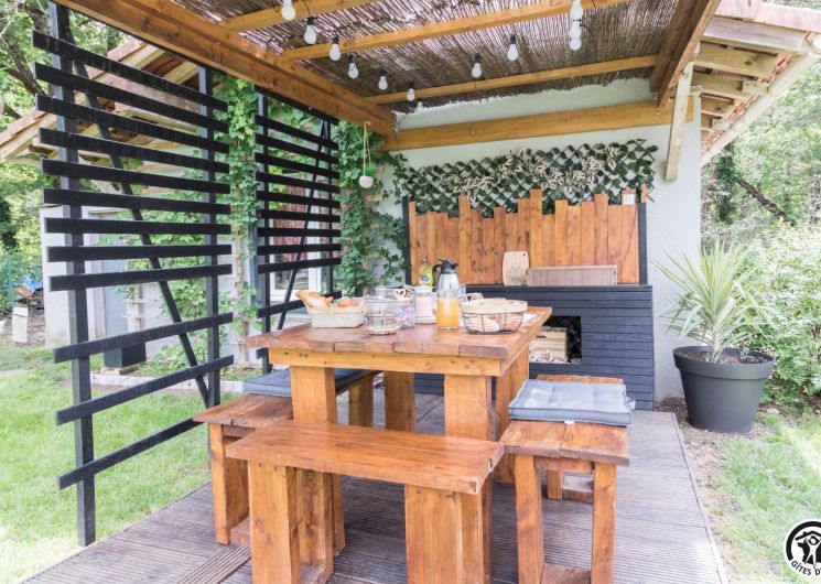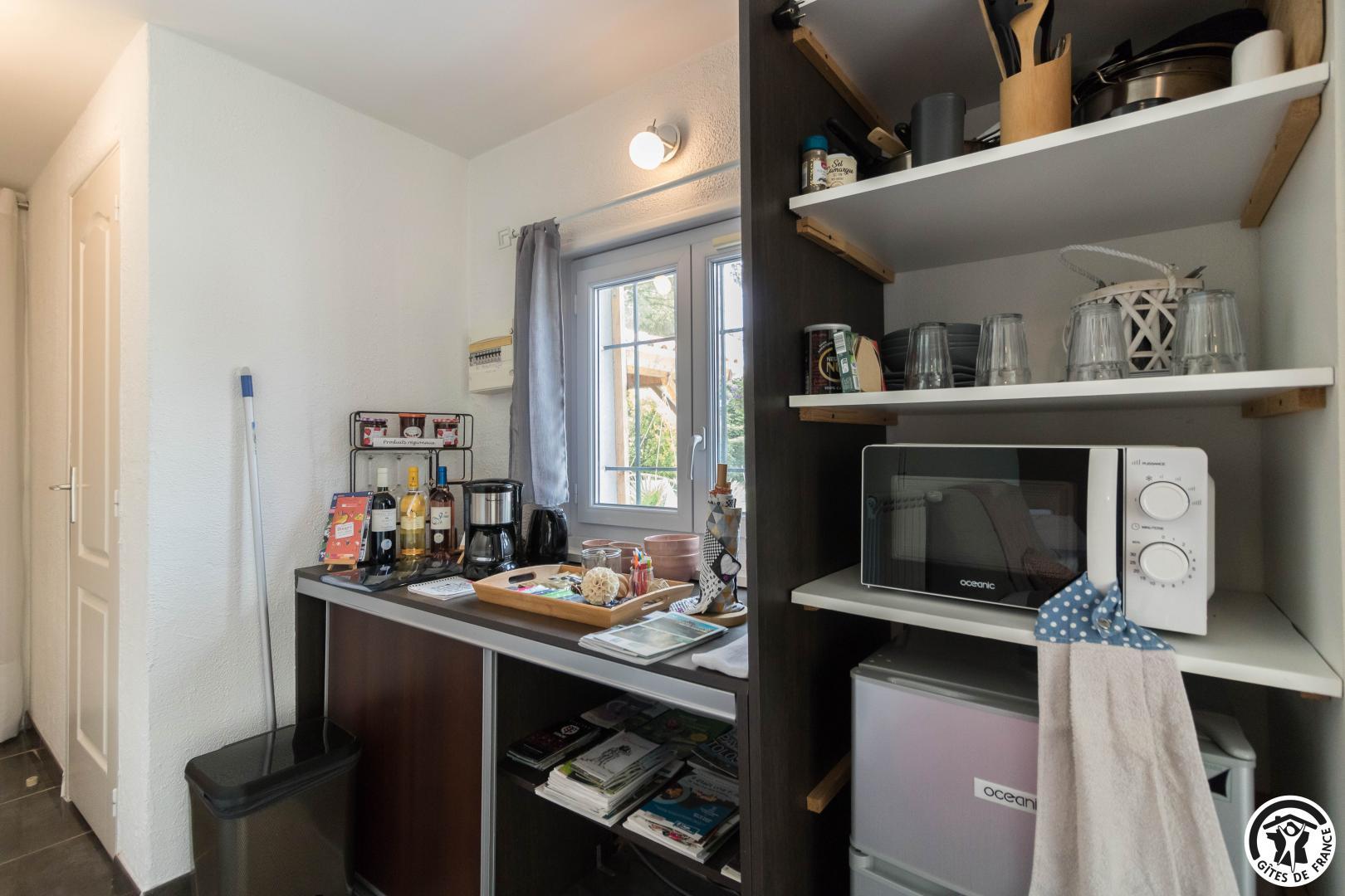 Nestling in a quiet, leafy setting, this bed and breakfast welcomes two people in a gentle, relaxing atmosphere. Designed as a small studio, it comprises a cosy 10 m² bedroom with en suite shower room and separate toilet, a fully-equipped kitchen area (courtesy tray, fridge-freezer, microwave) and two electric hotplates under the pergola in the garden. There is also a large lounge/dining room adjoining the main house, where home-made breakfasts are served in case of rain. On sunny days, start the day under the pergola, in the large enclosed garden with swimming pool, with a fresh and generous local breakfast.