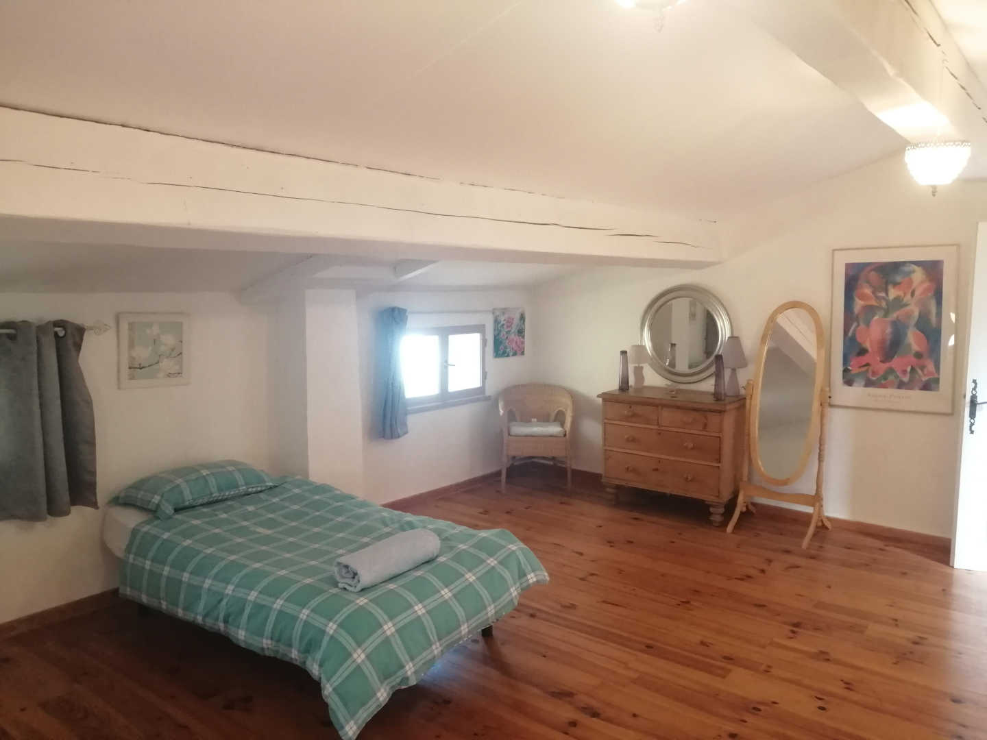 This former flour mill, dating from the early 17th century, is surrounded by 5,000 m² of unenclosed grounds, with access to the river nearby. You can enjoy a swim in the shared swimming pool (8 x 4 x 2 m), secured by an alarm system, open from 25 May to 30 September, from 10am to 9pm, or sunbathe on the terrace, or stroll through the surrounding countryside. On the 1st floor: the large living room with fireplace and television opens onto a 50 m² terrace with a beautiful view of the countryside. A kitchen is at your disposal. Muriel will prepare your breakfasts using mainly local produce. On the 2nd floor: a large family room for 4 people made up of 2 bedrooms, and a guest room for 2 people, are on the same level. Private parking is available on the property. Good quality internet connection (fibre).