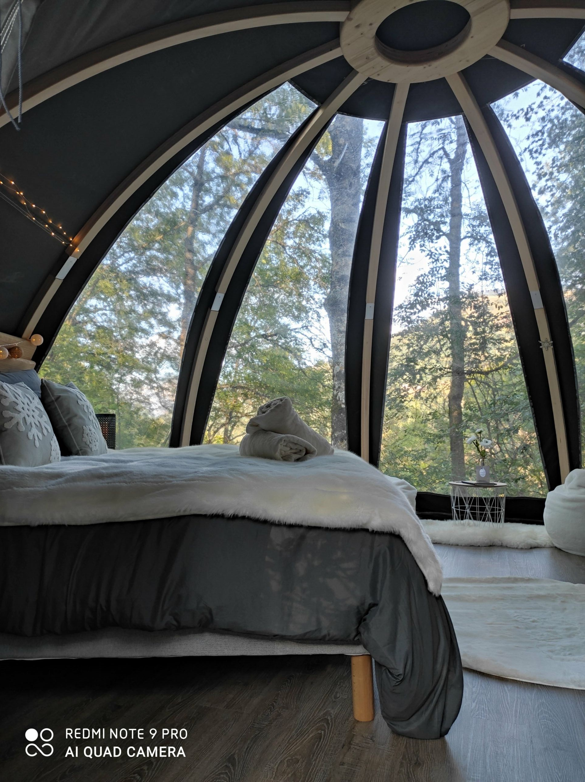 They have a surface area of 19m2 and can accommodate 2 people. They are installed on wooden platforms on stilts. Each cocoon has a wooden frame and is covered in cotton canvas on one half and transparent crystal on the other half. Each cocoon has its own private terrace and dry toilet. The interior decoration differs according to the cocoon chosen. La Cougne and La Tanière have mountain views, while Le Flocon is tucked away in a green setting.