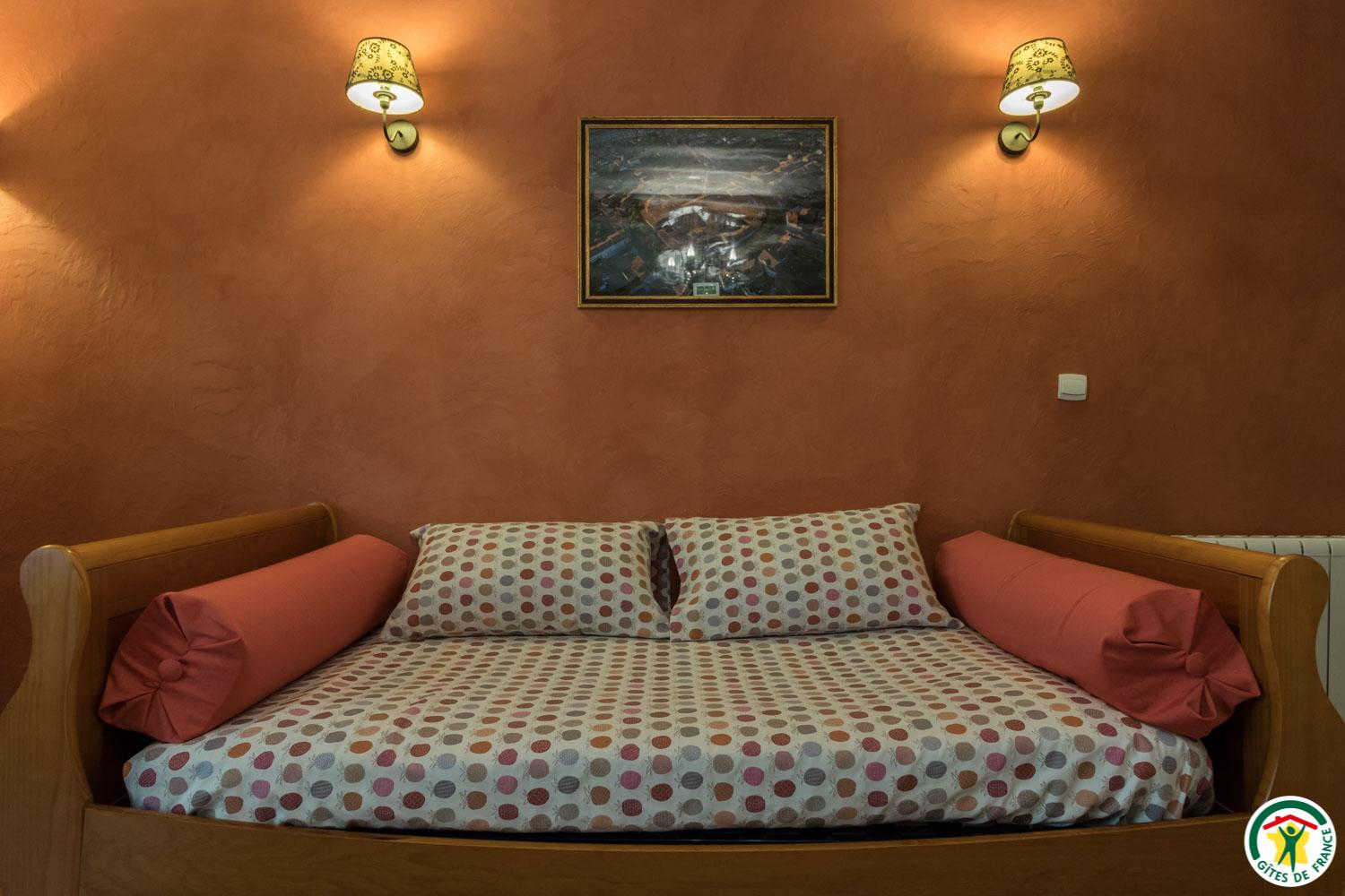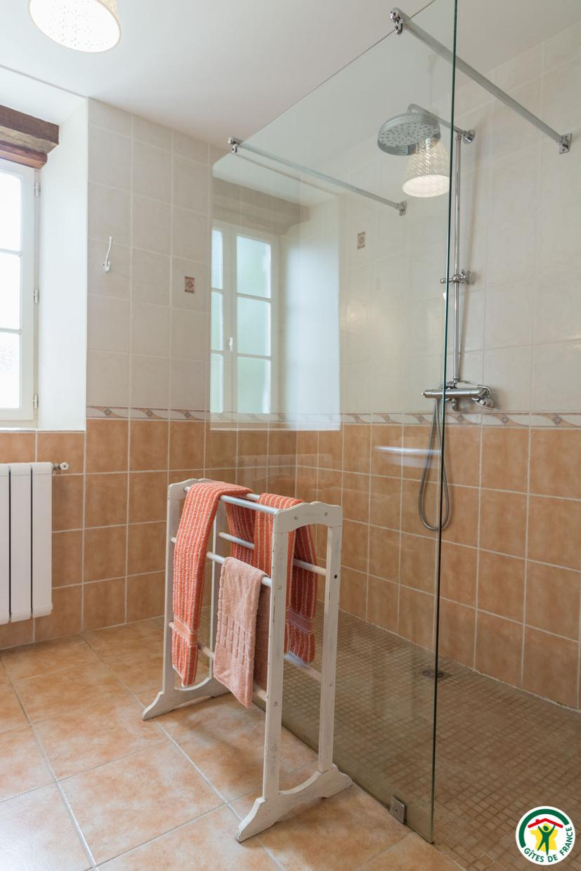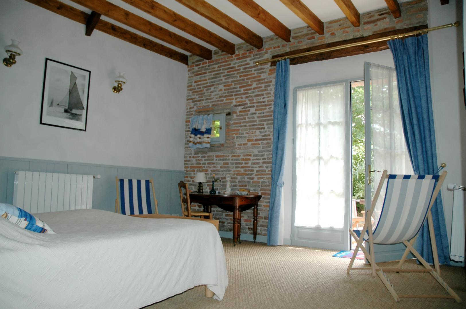 – First floor: “Venise” room with sloping ceilings (1 canopied 140cm double bed + 1 90cm single bed + bathroom, shower and WC).