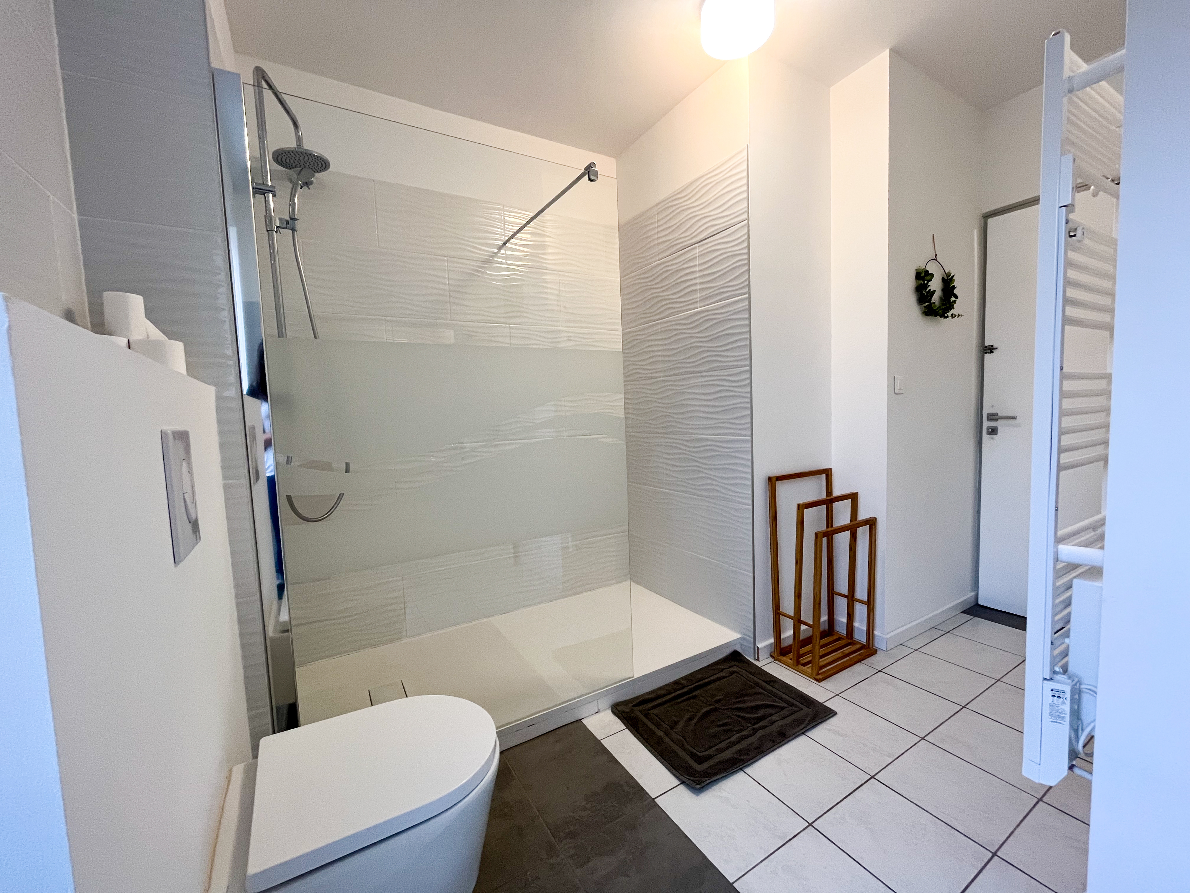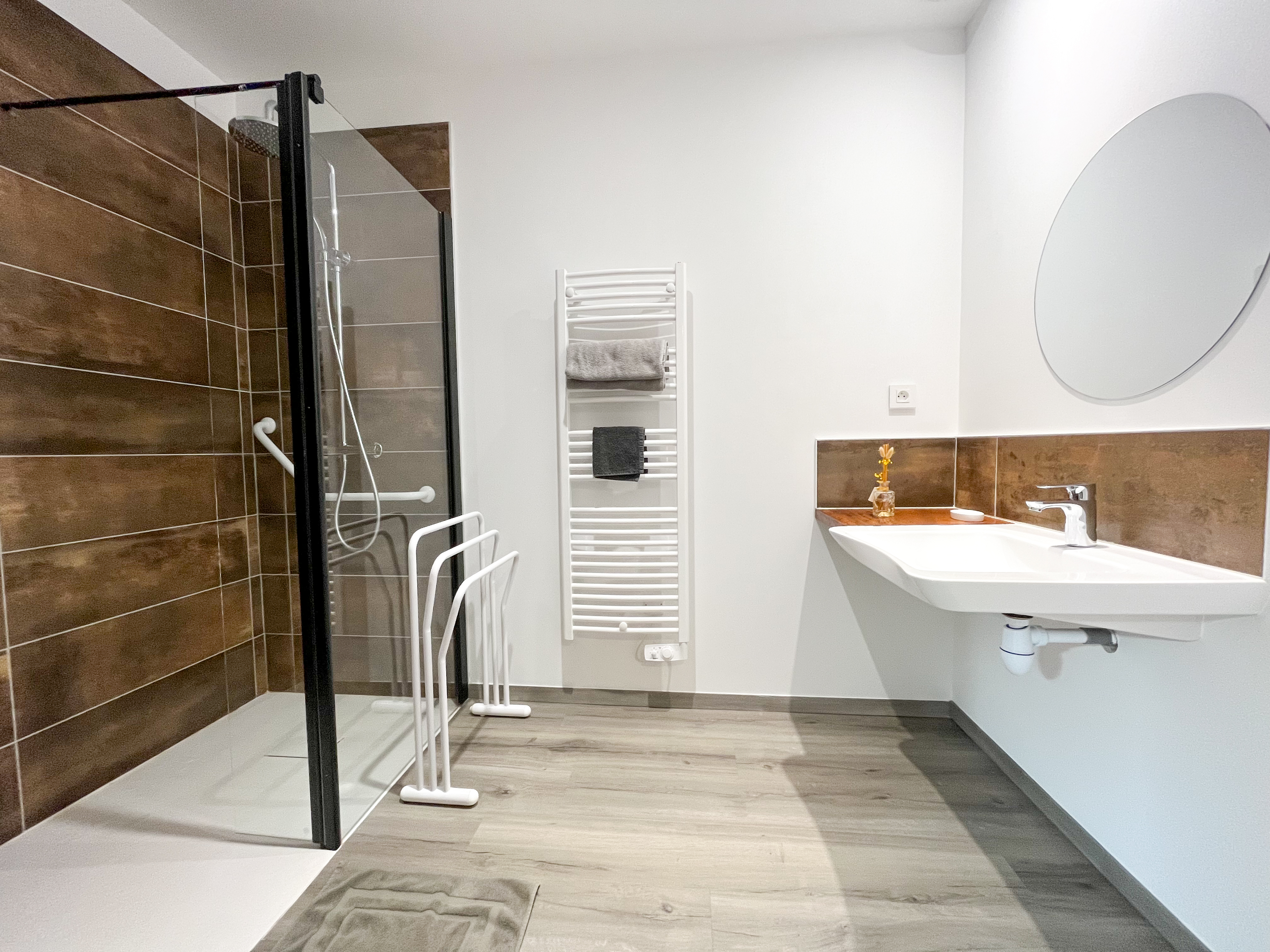 -Chambre Colorado plein pied – porte de + de 81 cm (2 pers), 27 m2, 2 lits TWIN (90 ou 180). Salle de bain privée avec douche italienne et wc séparé adapté.