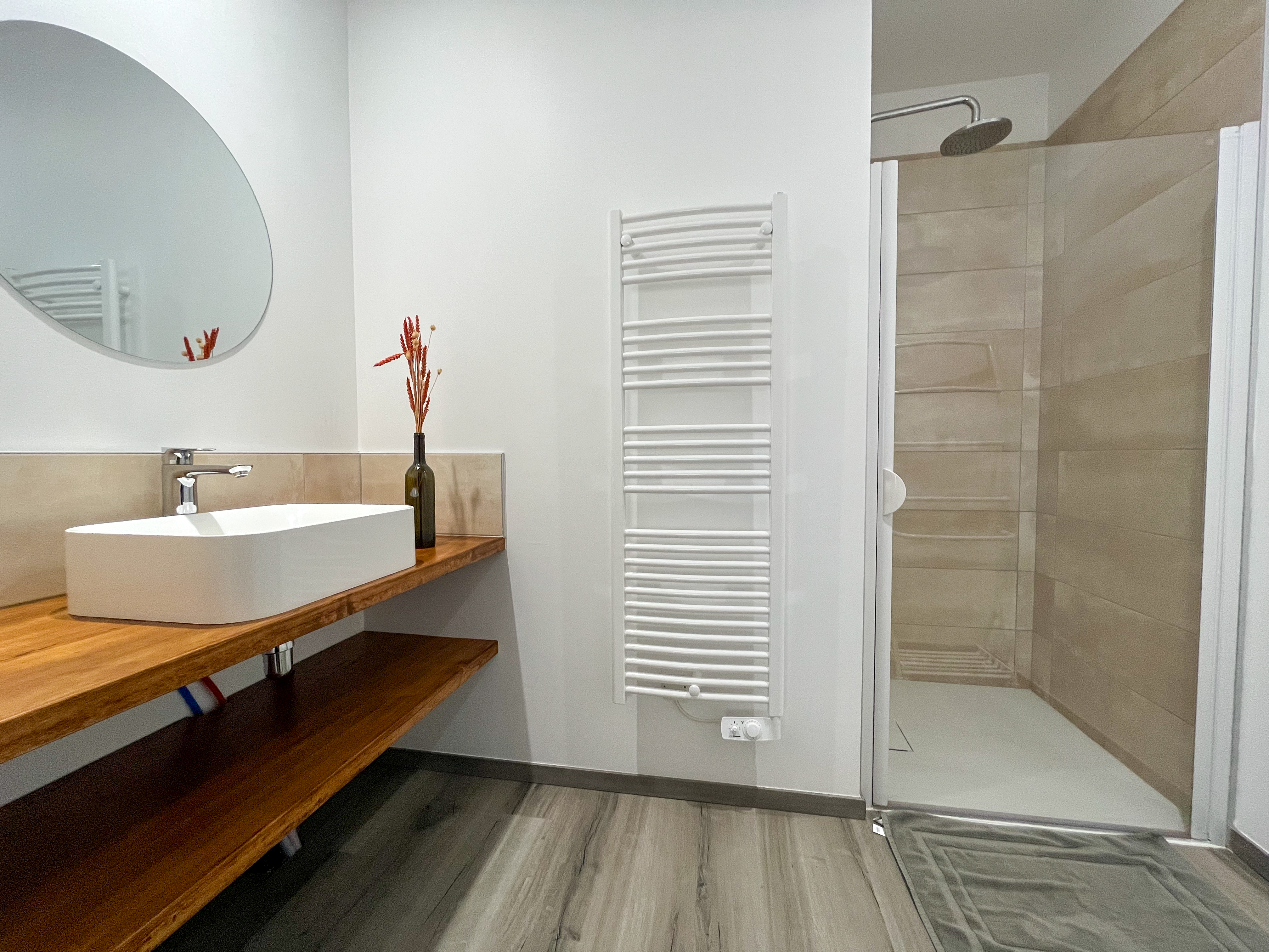 Toutes les chambres sont à l’étage, accessibles par l’escalier extérieur. Elles partagent la même salle de bain avec douche, bidet et wc séparé.