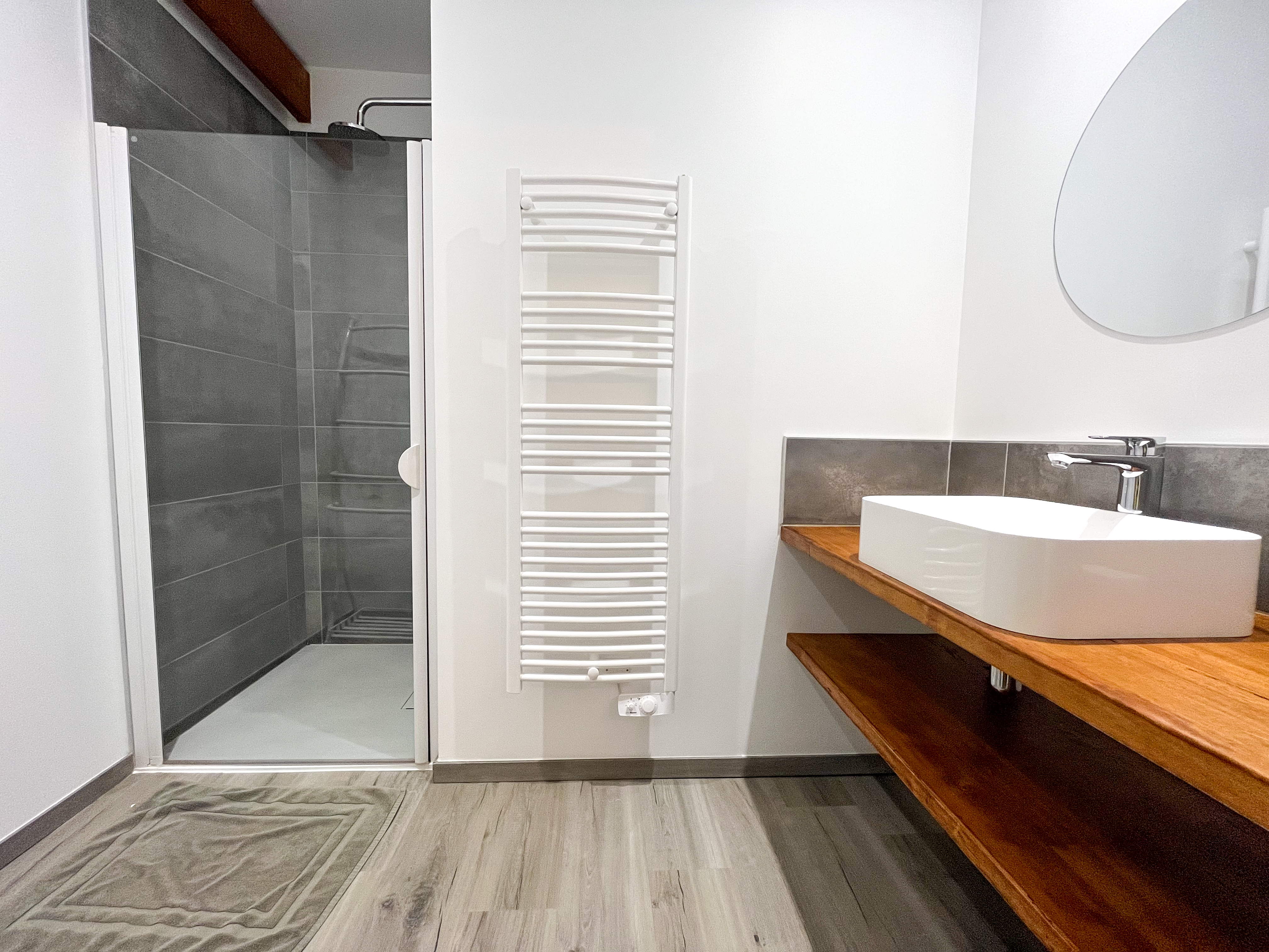 -Chambre Alpes (2 pers.), 23m2, 1 lit double 160. Salle de bain privée avec douche et wc séparé.