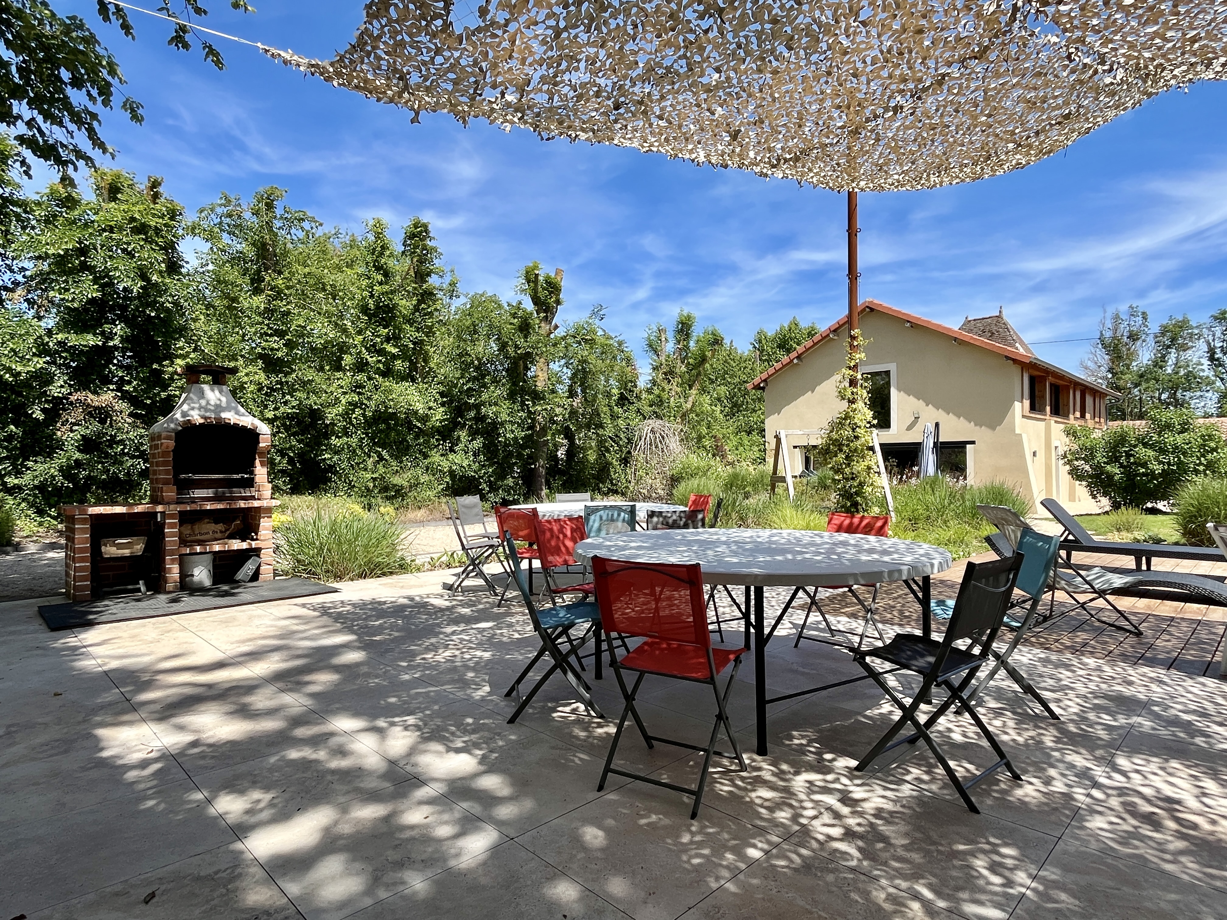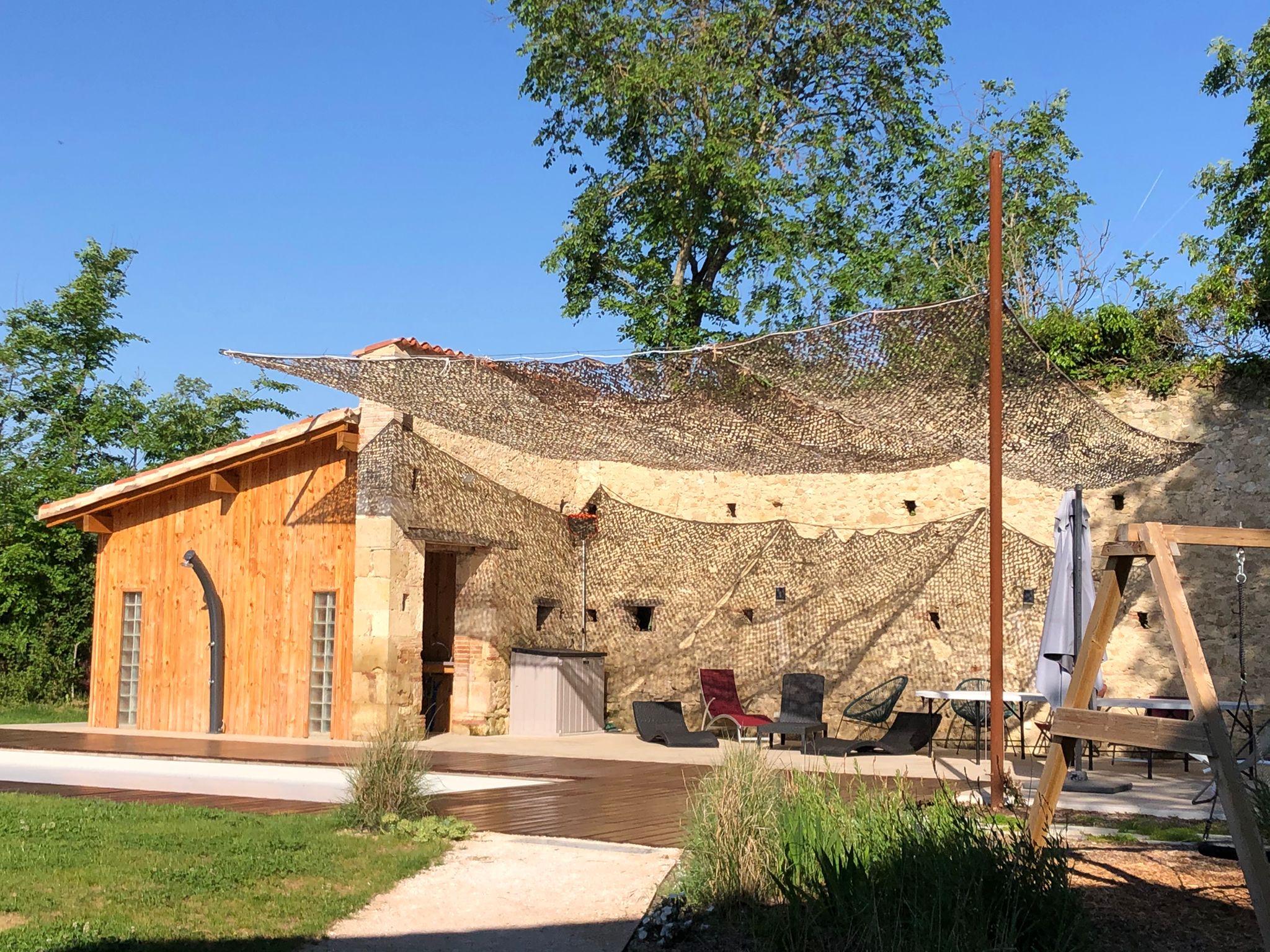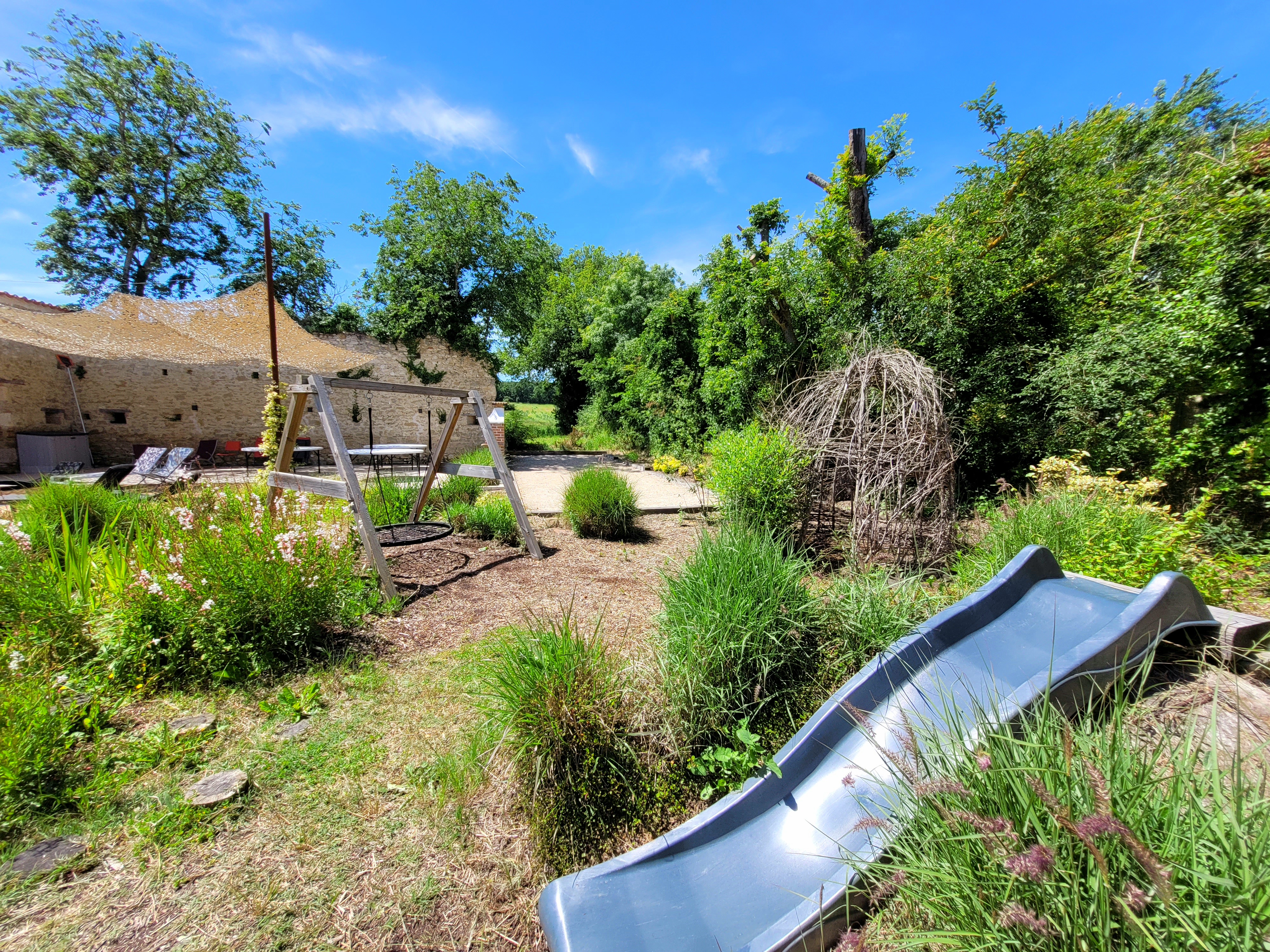 Un paradis pour les familles et enfants avec toboggan végétalisé, balançoire, cabane et piscine privée chauffée, terrain de pétanque, bbq, pool house, ping-pong…