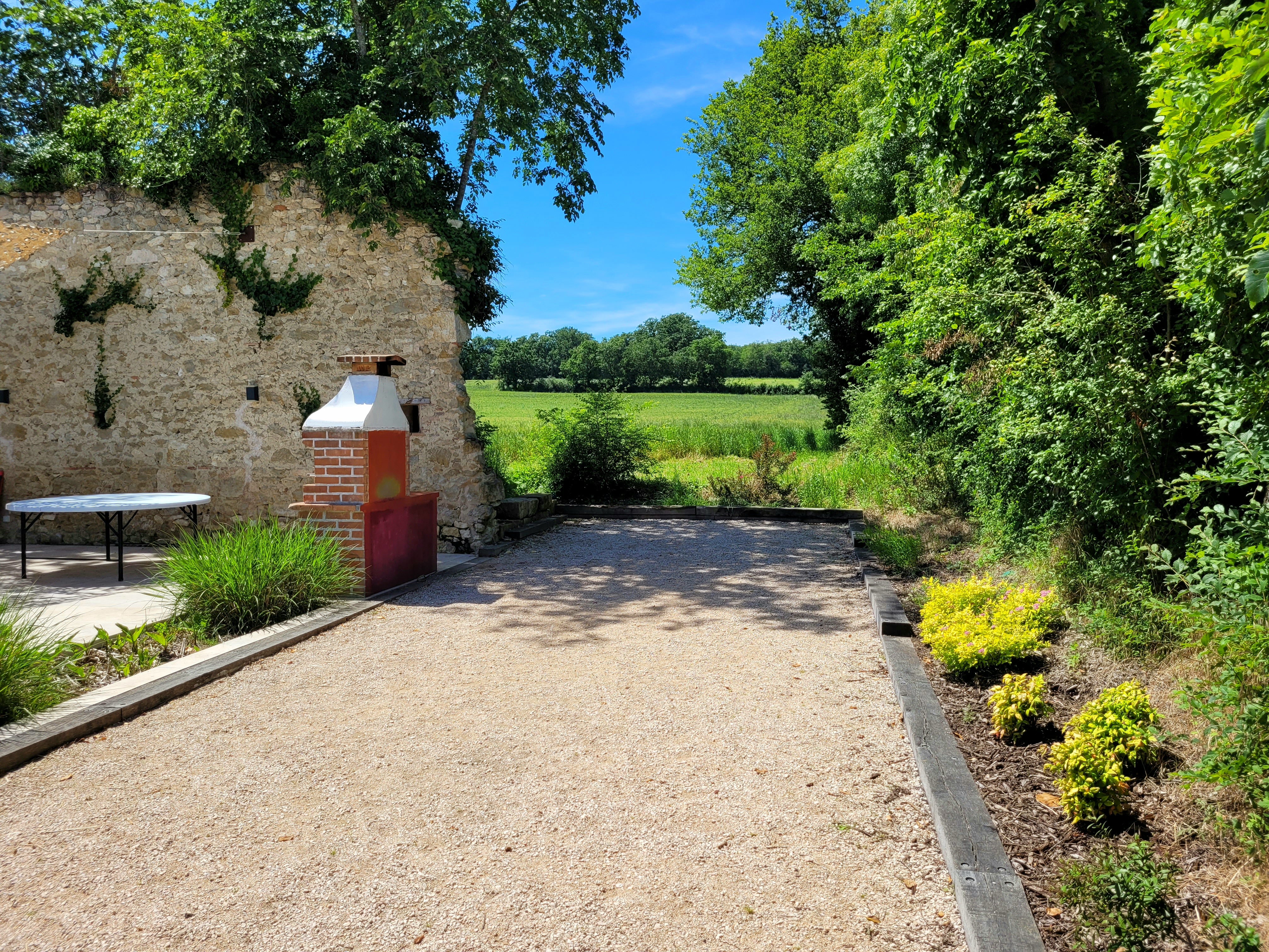 Pour la convivialité, une piscine privée de 9mx4m x 1,5m de profondeur avec une large plage immergée, un escalier d’angle et un volet roulant antichute est à disposition. Elle peut être chauffée dés son ouverture en avril, sans surcoût et permet d’augmenter le température de l’eau de 10° au dessus de celle de l’air. Il y a aussi une grande terrasse avec chaises longues, transats, cuisine d’été, barbecue à bois (charbon non fourni) et WC extérieur, terrain de pétanque de 15mx4m, aire de jeux pour enfants avec toboggan végétalisé, balançoire et cabane « vivante » en saule. Une table de ping-pong et divers autres jeux sont également disponibles comme divertissement. A noter que le terrain est non clos, et des voisins se trouvent à une dizaine de mètres, il faudra donc les respecter en limitant les nuisances. Il n’y a cependant aucun vis à vis avec personne !