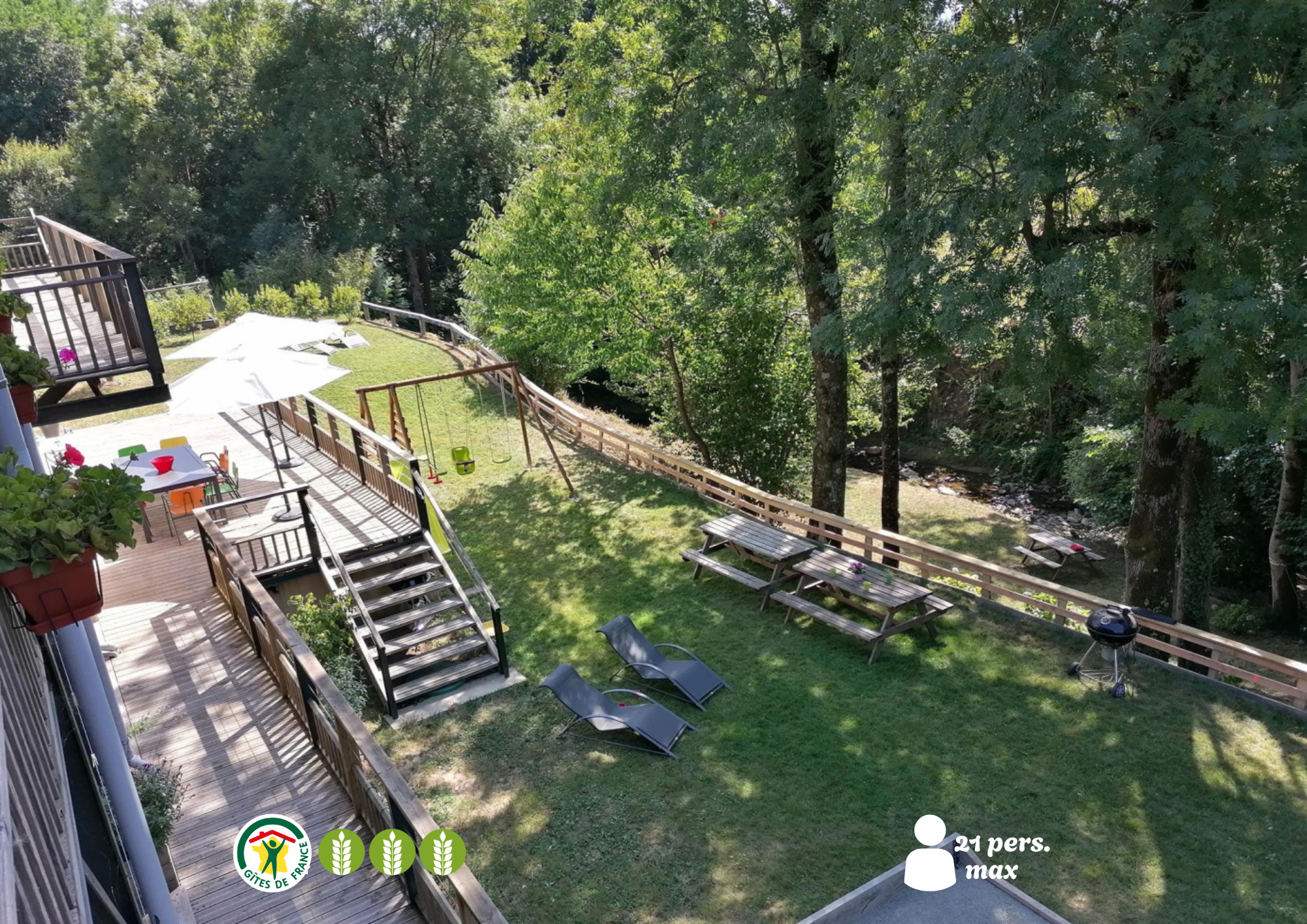 Set of three gîtes for 2 to 20 people on 1ha planted with trees and a river.