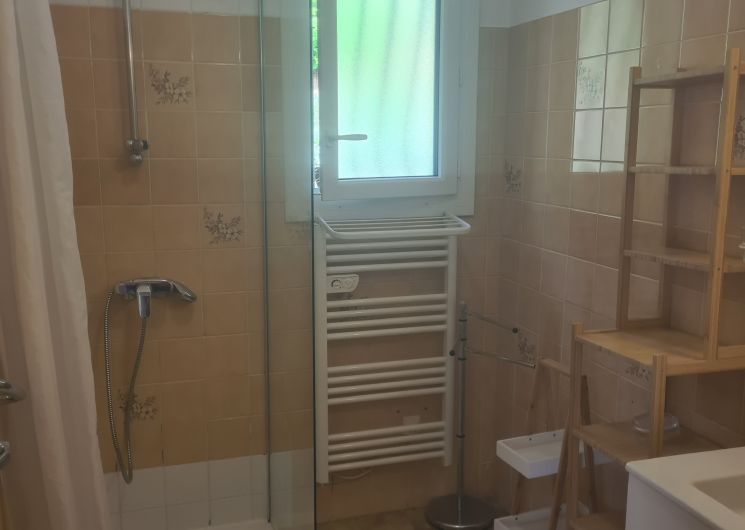 Salle d’eau avec douche et WC séparés.
