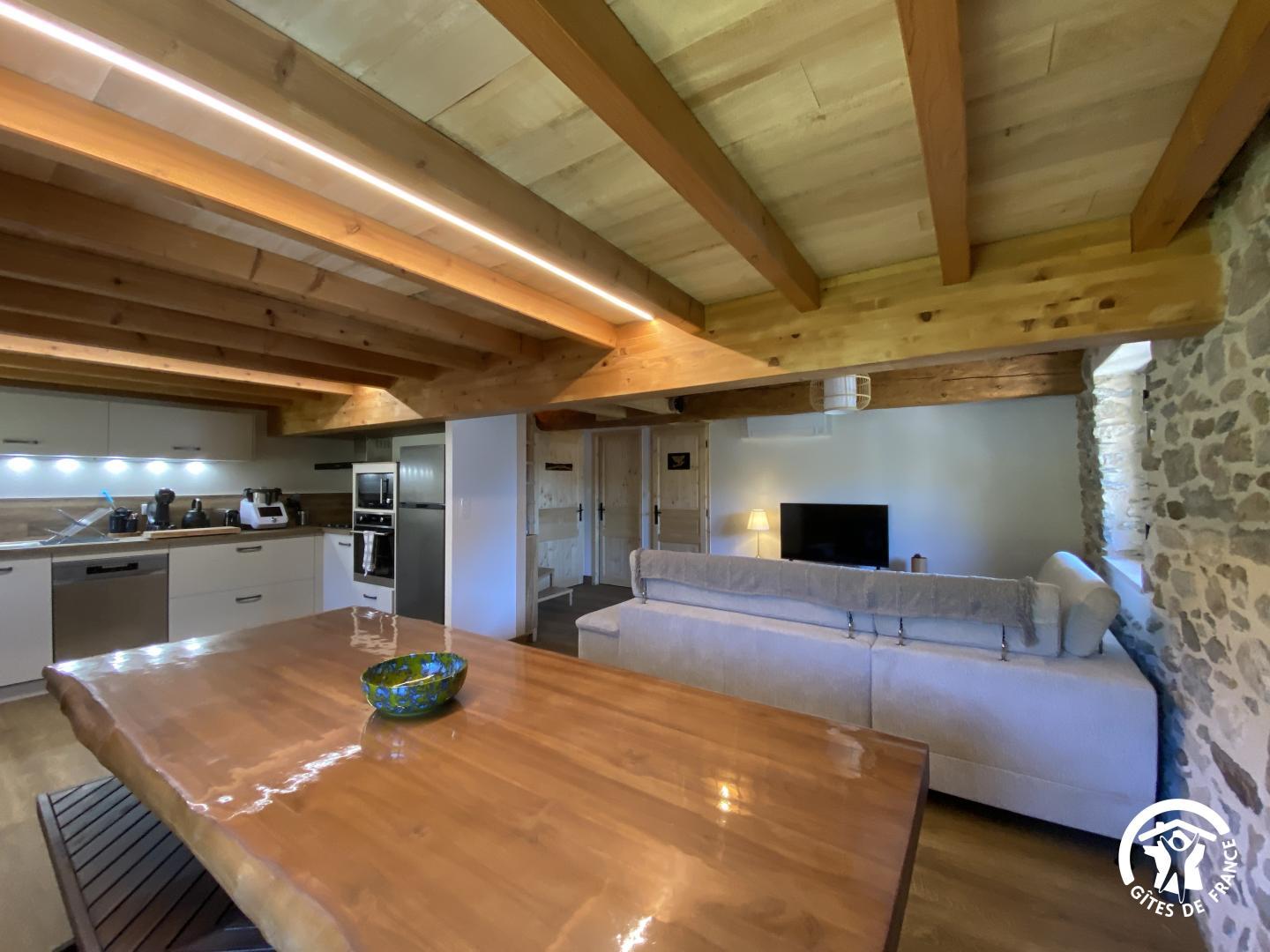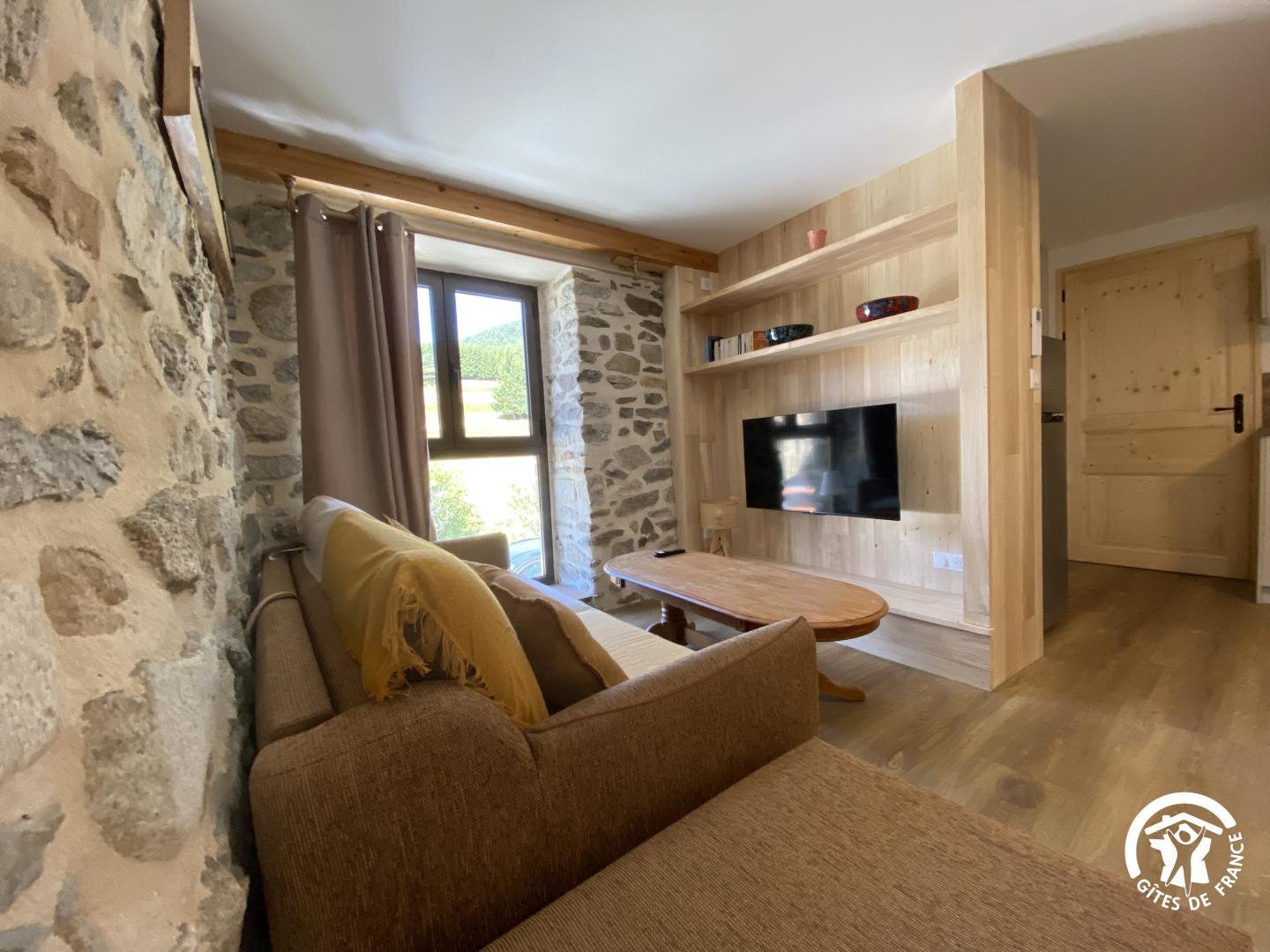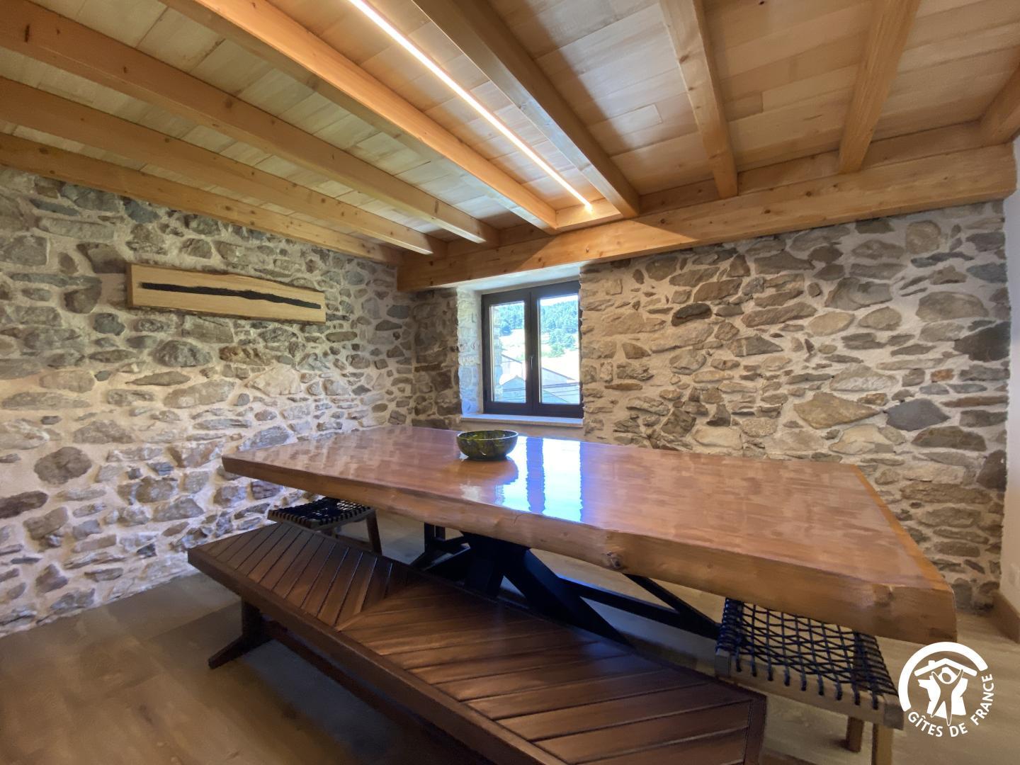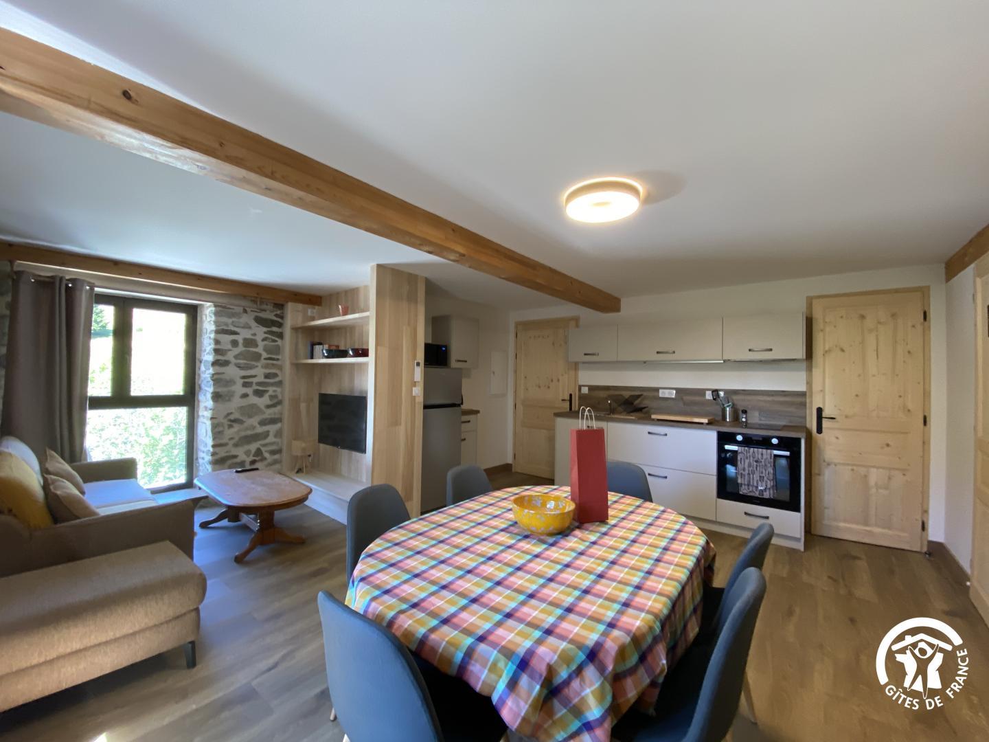 Set in the Parc Naturel, in the heart of the picturesque hamlet of Rieutort, this two-apartment gîte is ideal for a family and is ideally located for enjoying the many treasures of the region: high altitude lakes, forests and the emblematic peaks of the Pyrénées Orientales. Ground floor: entrance 1st floor: Kitchen without dishwasher, dining area and lounge: sofa bed for 2 people Bedroom 1: 1 bed 140 x 190 Small bedroom 2: 2 bunk beds 90 x 190 Shower room with wc WC 2nd floor, on 2 levels : 1st level : Kitchen with dishwasher, dining area and lounge: sofa bed for 2 people bedroom: 1 bed 140 x 190 , en-suite shower room and wc Shower room and wc Access via a winding staircase to the 2nd level: mezzanine with beams and low ceiling, equipped with 2 windowless sleeping areas built into the rocks 1st sleeping area with door: 1 bed 140 x 190 and 1 bed 90 x 190 2nd sleeping area without door, with an oval skylight, no opening: 1 bed 140 x 190 and 1 bed 90 x 190 Communal car park