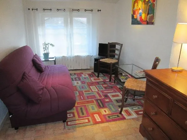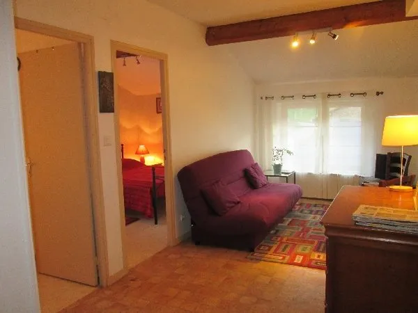 Gîte accessible par un escalier. 2 chambres (1 lit 160 – 2 lits 90), séjour, canapé convertible, télévision, cuisine équipée, lave-vaisselle, micro-ondes, réfrigérateur. Salle de bain, WC indépendant. Au rez-de-chaussée : buanderie lave-linge, chauffage central, salon de jardin, barbecue, espace extérieur clos et privatif. Le gîte peut être loué à la nuitée (minimum 2 nuits). Draps compris, ménage en sus. Accès internet.