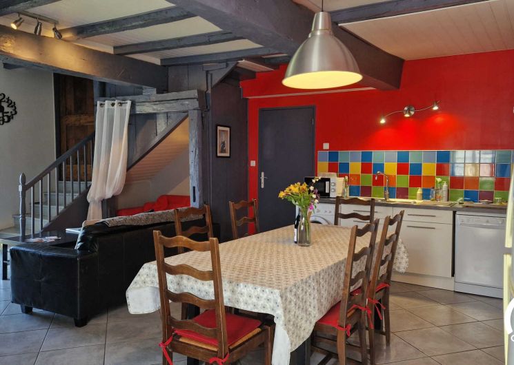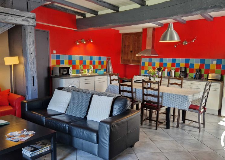 Living area with dining room, lounge and open kitchen. At the back, a utility room with toilet. Fully equipped: washing machine, dishwasher, fridge-freezer, oven, microwave…