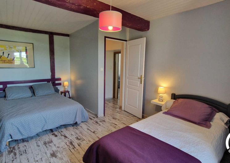 Mademoiselle Églantine: one 140×190 bed, one 90 cm single bed, and a wardrobe with hanging space.