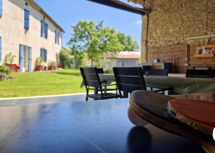 Its real highlight: a 60 m² covered terrace, like an extra living room facing the garden, equipped with a large table, garden furniture, ping-pong table and barbecue—perfect for relaxing and sharing good times.
