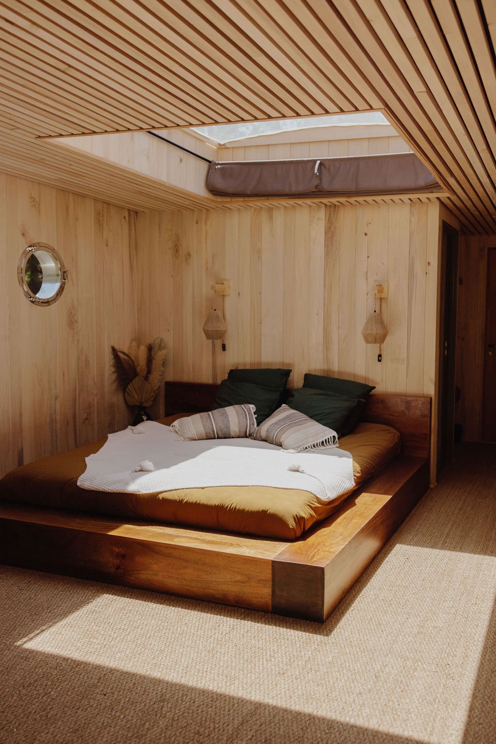 Vous souvenez-vous à l’école, lors des dictées, l’expression “ouvrez la parenthèse” ? Et bien c’est l’invitation que vous fait le Bateau Cabane SPA, un moment hors du temps, hors du quotidien et hors du bruit. A deux, en amoureux, au bord du Lot qui coule paisiblement devant les falaises majestueuses. Le principe est simple, c’est celui d’une chambre d’hôtel sauf que c’est joli comme une cabane, que ça flotte comme un bateau, que c’est suuuuuper confort et bien décoré, qu’il y a un puit de lumière géant au-dessus du lit pour observer les étoiles et qu’il y a un bain nordique écolo sur la terrasse pour se prélasser pendant des heures. Juste pour profiter de l’instant, profiter encore et enfin refermer la parenthèse, à contrecœur.