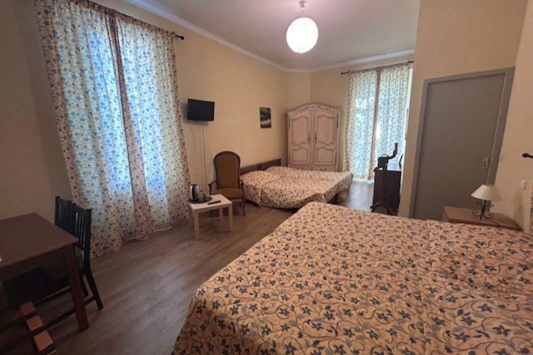 La Chambre N°10 – SAPIN : Lors de votre séjour à Laroque vous disposerez d’une chambre décorée simplement offrant une capacité de 4 personnes. Elle est équipée de deux lits de 100cm et deux lits de 90 cm, d’une salle de bain privative avec WC, et de tous les équipements nécessaires, y compris un sèche-cheveux, une climatisation, une télévision et un bureau pour le télétravail. Le Wi-Fi est gratuit, et une table ainsi qu’un fer à repasser sont disponibles sur demande. Un Petit-Déjeuner Gourmand pour Bien Commencer la Journée : Chaque matin, vous pourrez déguster un petit-déjeuner gourmand composé de pain, beurre, confiture, croissant, pain au chocolat, yaourt, céréales … servis avec attention dans notre salle à manger conviviale ou bien sur la terrasse si le temps nous le permet. Détente et Loisirs au Parc au Cèdres Vous aurez également la possibilité de vous détendre dans notre jardin paisible, où le chant des oiseaux accompagne le murmure de la brise, créant un cadre idyllique pour la méditation ou la lecture. Une grande piscine est disponible entourée de transat pour flâner. Micro-ondes ainsi que réfrigérateur sont en libre accès dans la “cuisine extérieure” Nous serons ravis de vous accueillir aux Chambres d’Hôtes Le Parc au Cèdres pour un séjour inoubliable dans le sud de la France.