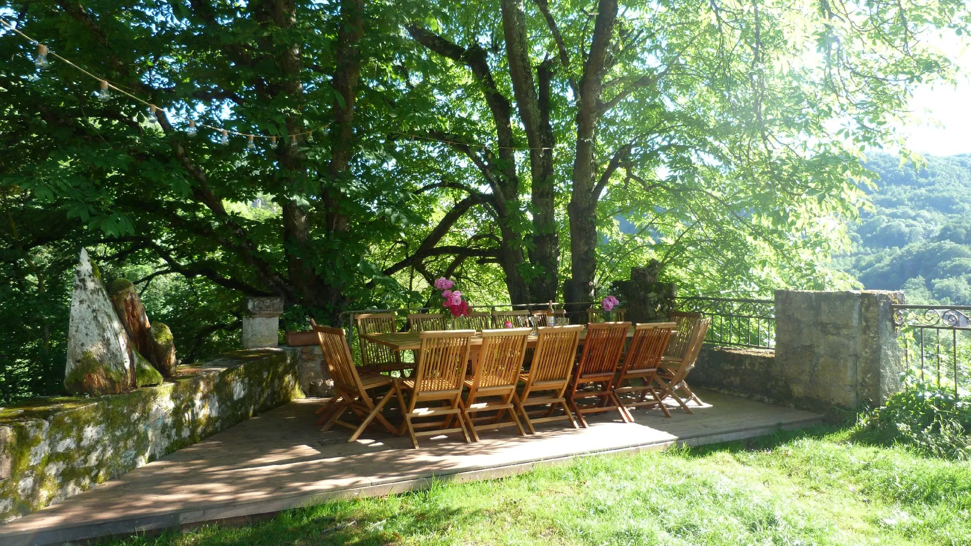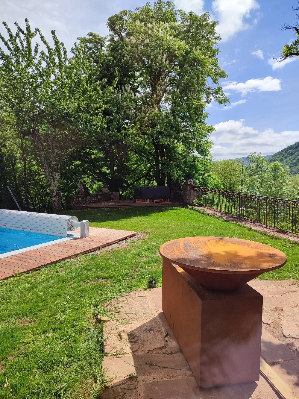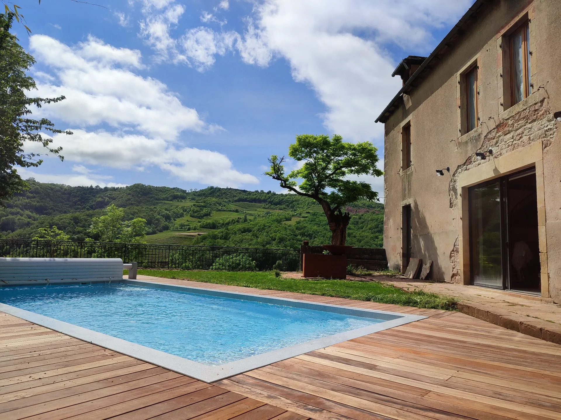 A 20 km de Conques et de Rodez, dans le Vallon de Marcillac, venez vous ressourcer et vous retrouver, en famille ou entre amis, dans cette belle maison de maître en pierre de pays datant de 1860, rénovée en 2023, dominant la vallée de l’Ady, dans un cadre exceptionnel.