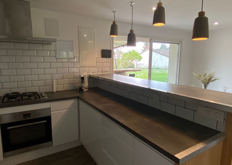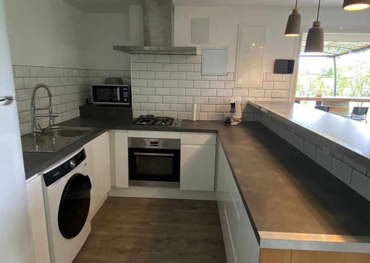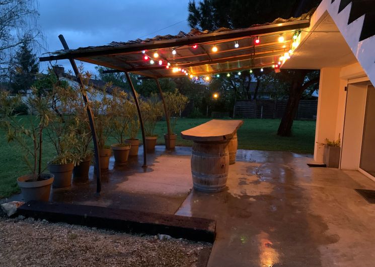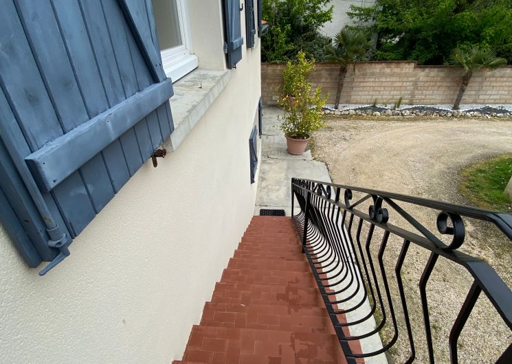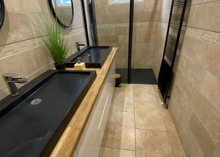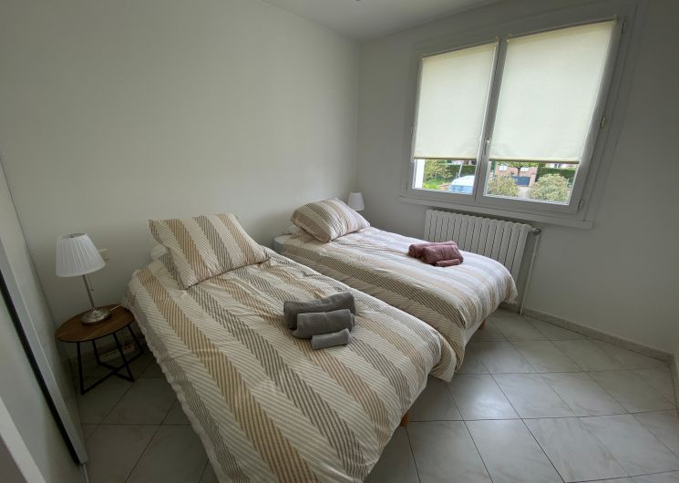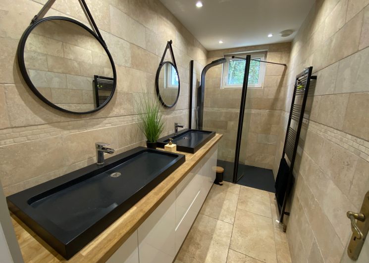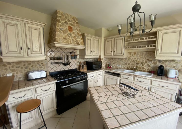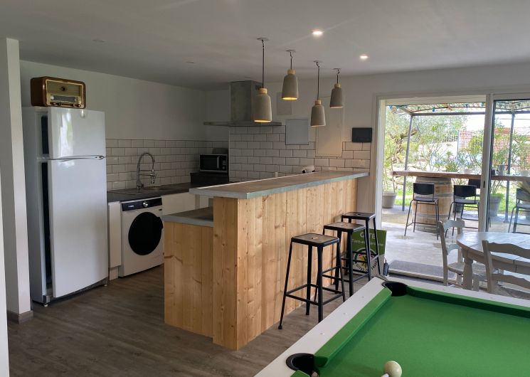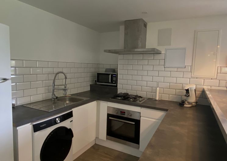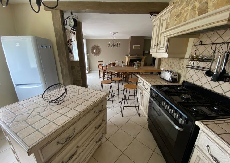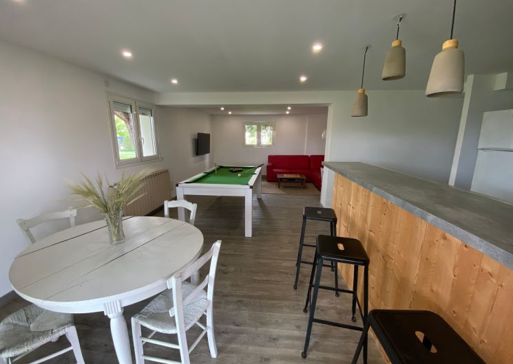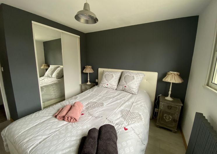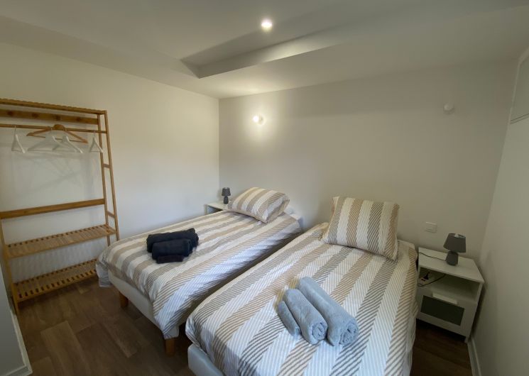 The accommodation comprises two interconnected areas, on the ground and ground floors, with all modern comforts. On the ground floor, there is a living room with a fitted kitchen (fridge-freezer, hob, oven, washing machine), table and chairs, corner sofa and TV. A bedroom (2 x 0.90cm beds), a bedroom (1 x 140cm bed) and a huge shower room with wc. Via an internal staircase and another external staircase, the 1st floor offers a large living room with fireplace (TV insert), corner sofa, dining area (table and chairs), and integrated kitchen area (cooking facilities, dishwasher, oven, microwave, fridge). Two bedrooms (2 single beds), one bedroom (1 double bed), shower room and separate wc. Balcony on first floor. Covered pergola with garden table and stools, string lights. Wifi throughout. Bed linen, towels and household linen provided and included in the price. Wood for the fireplace provided. Charcoal barbecue. Fenced garden with trees and gate. Bicycles can be stored at the rear.