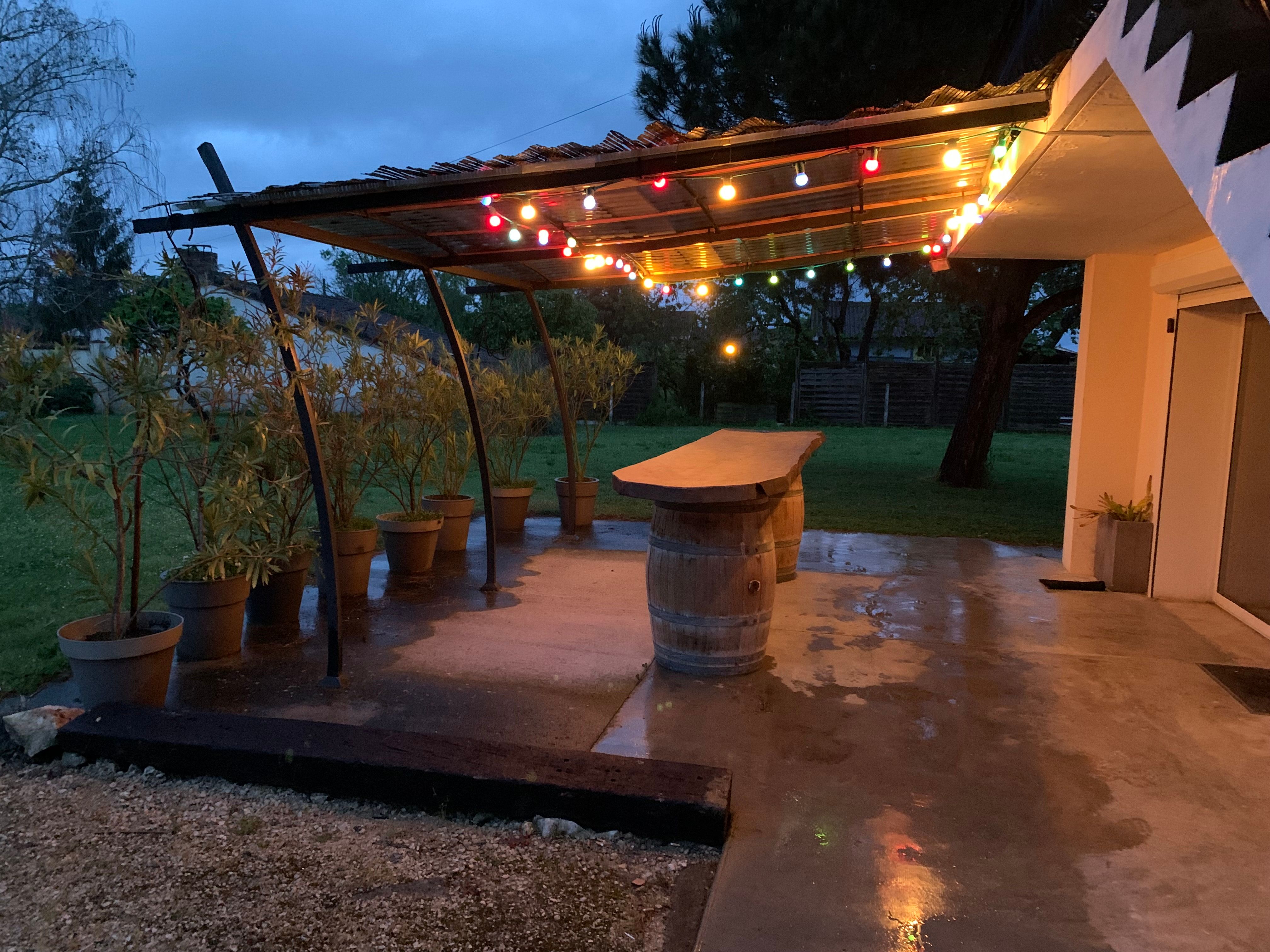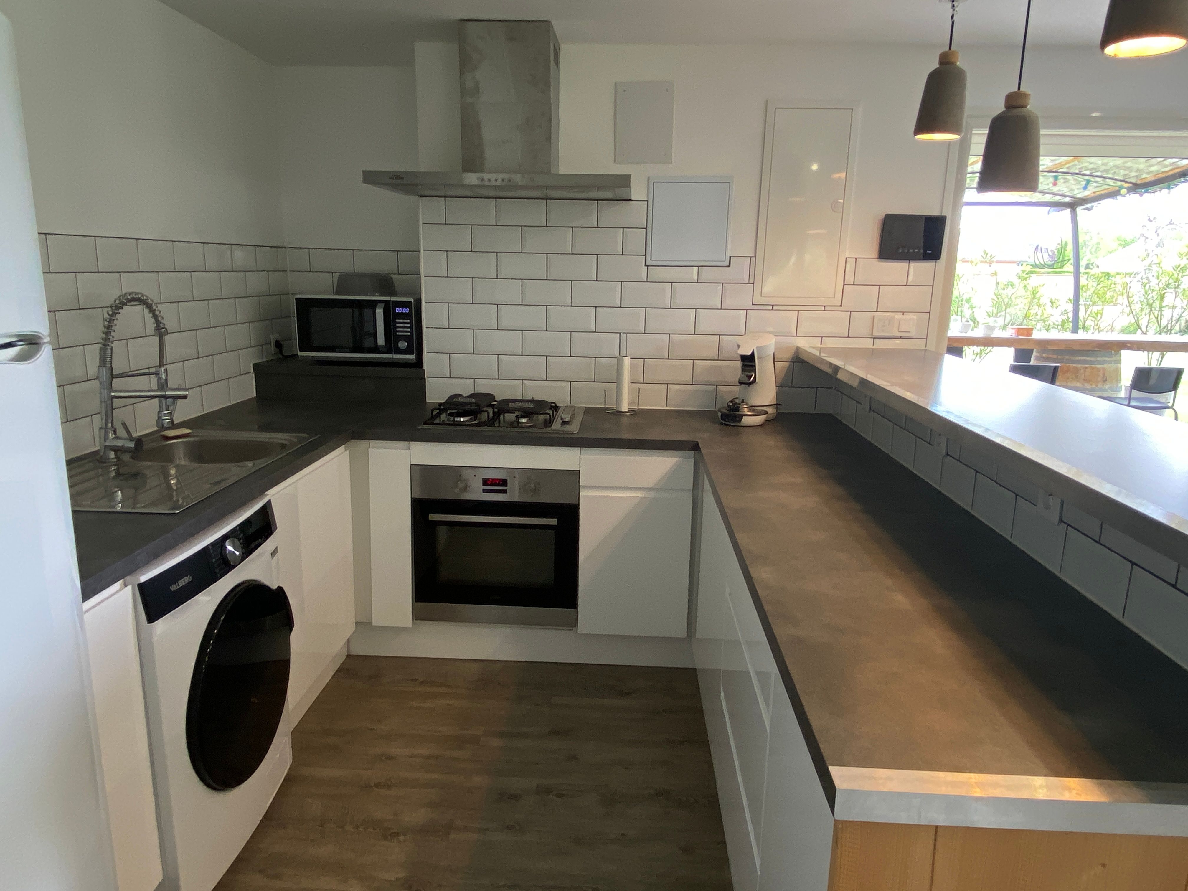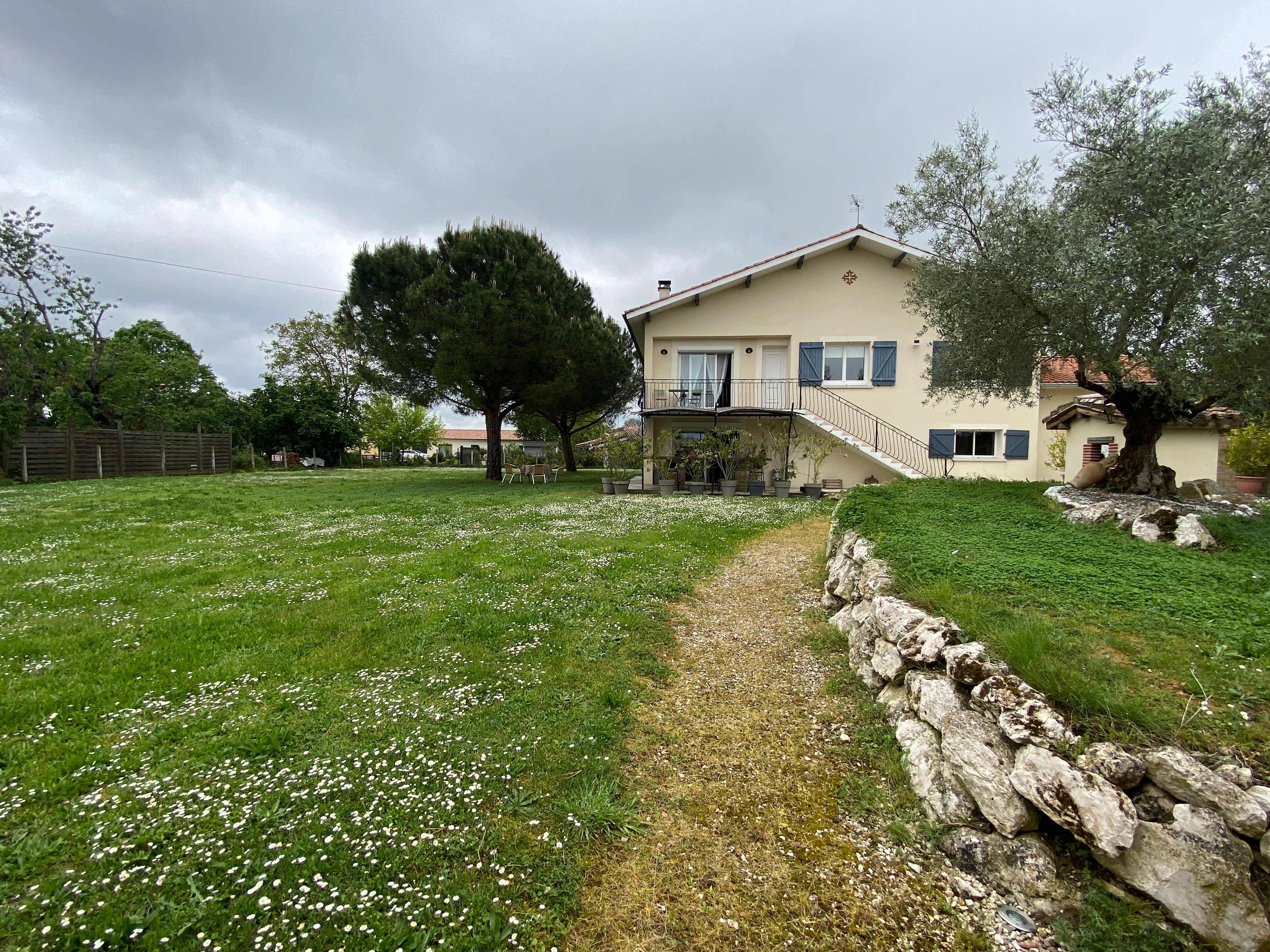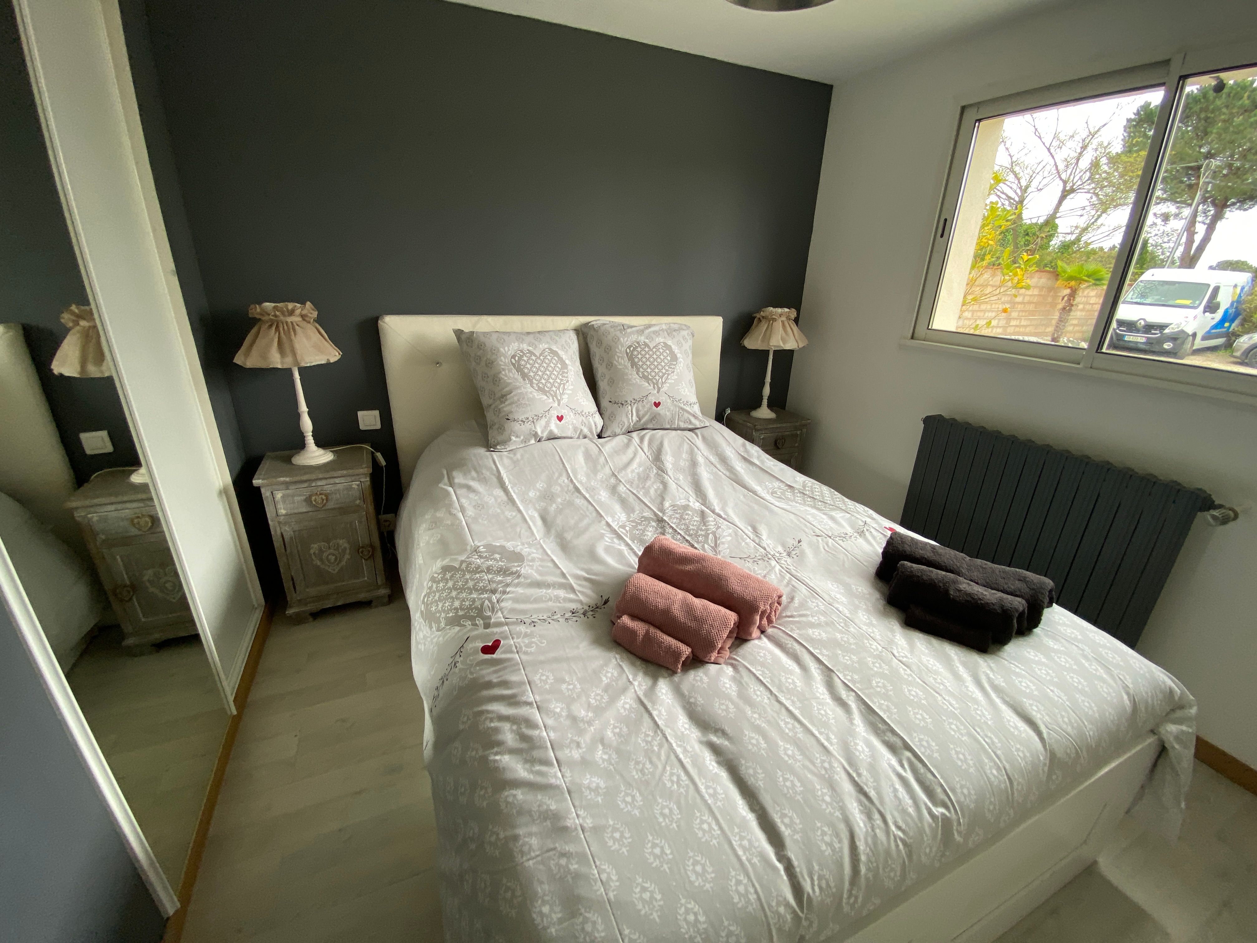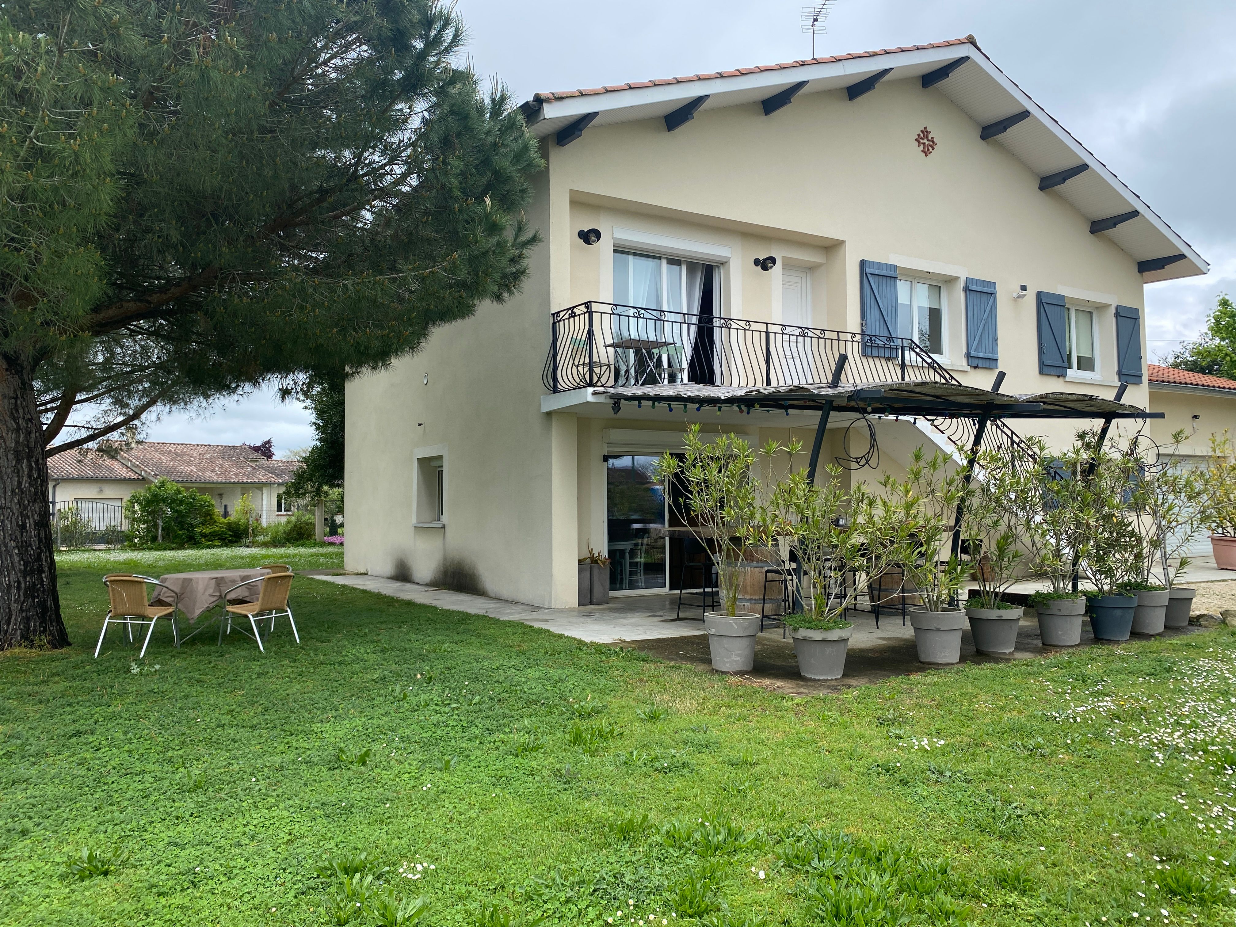 The accommodation comprises two interconnected areas, on the ground and ground floors, with all modern comforts. On the ground floor, there is a living room with a fitted kitchen (fridge-freezer, hob, oven, washing machine), table and chairs, corner sofa and TV. A bedroom (2 x 0.90cm beds), a bedroom (1 x 140cm bed) and a huge shower room with wc. Via an internal staircase and another external staircase, the 1st floor offers a large living room with fireplace (TV insert), corner sofa, dining area (table and chairs), and integrated kitchen area (cooking facilities, dishwasher, oven, microwave, fridge). Two bedrooms (2 single beds), one bedroom (1 double bed), shower room and separate wc. Balcony on first floor. Covered pergola with garden table and stools, string lights. Wifi throughout. Bed linen, towels and household linen provided and included in the price. Wood for the fireplace provided. Charcoal barbecue. Fenced garden with trees and gate. Bicycles can be stored at the rear.