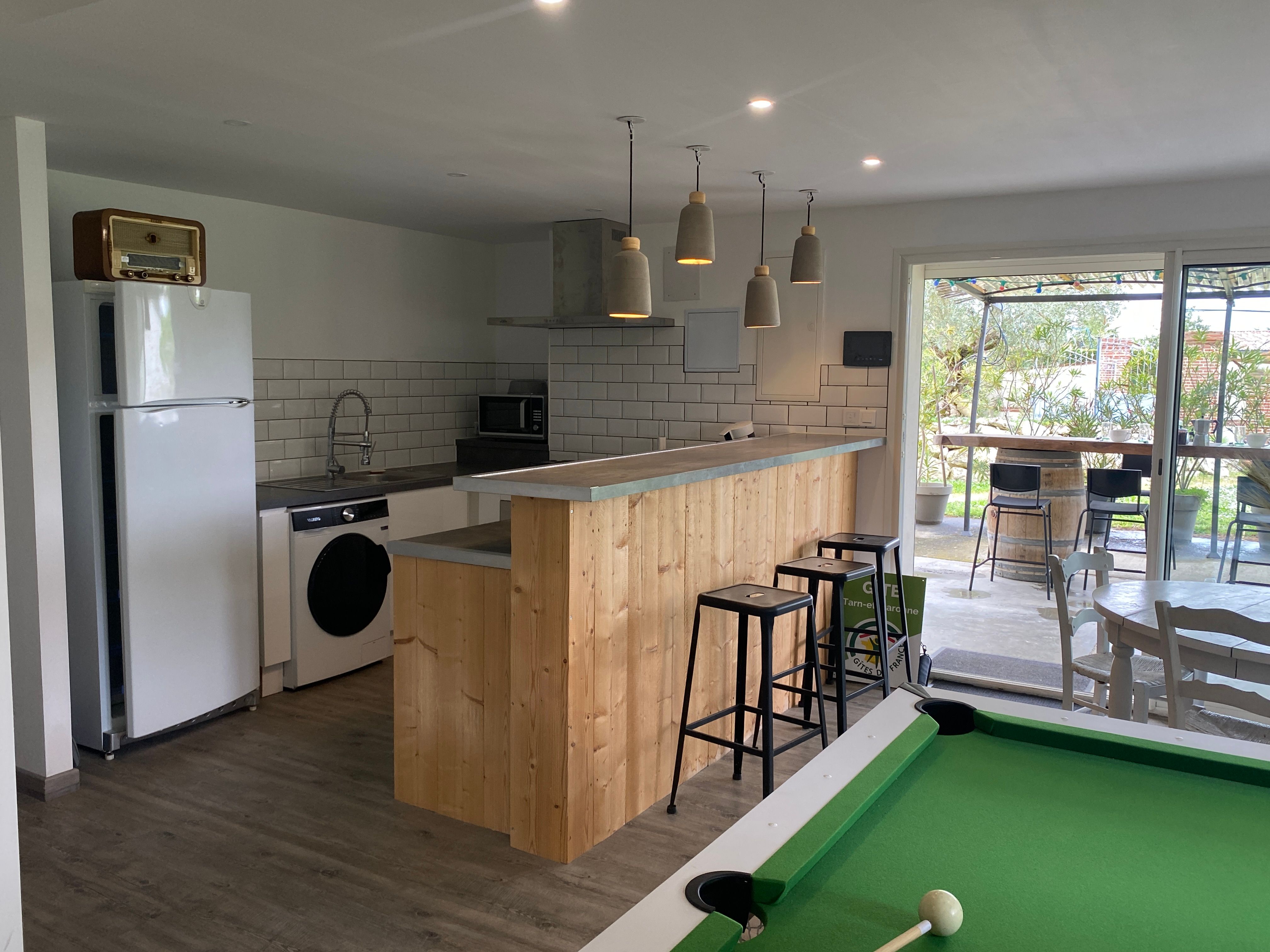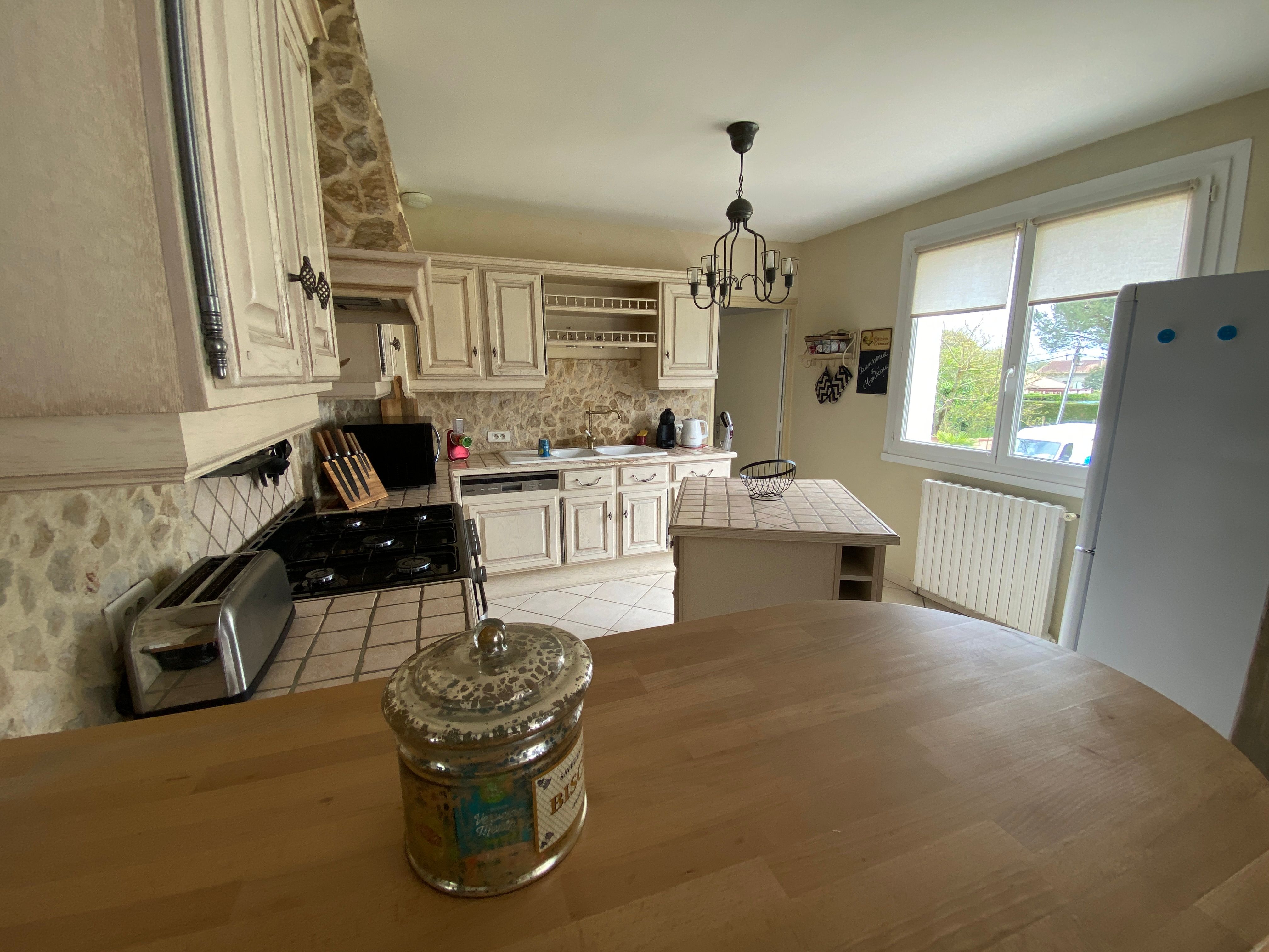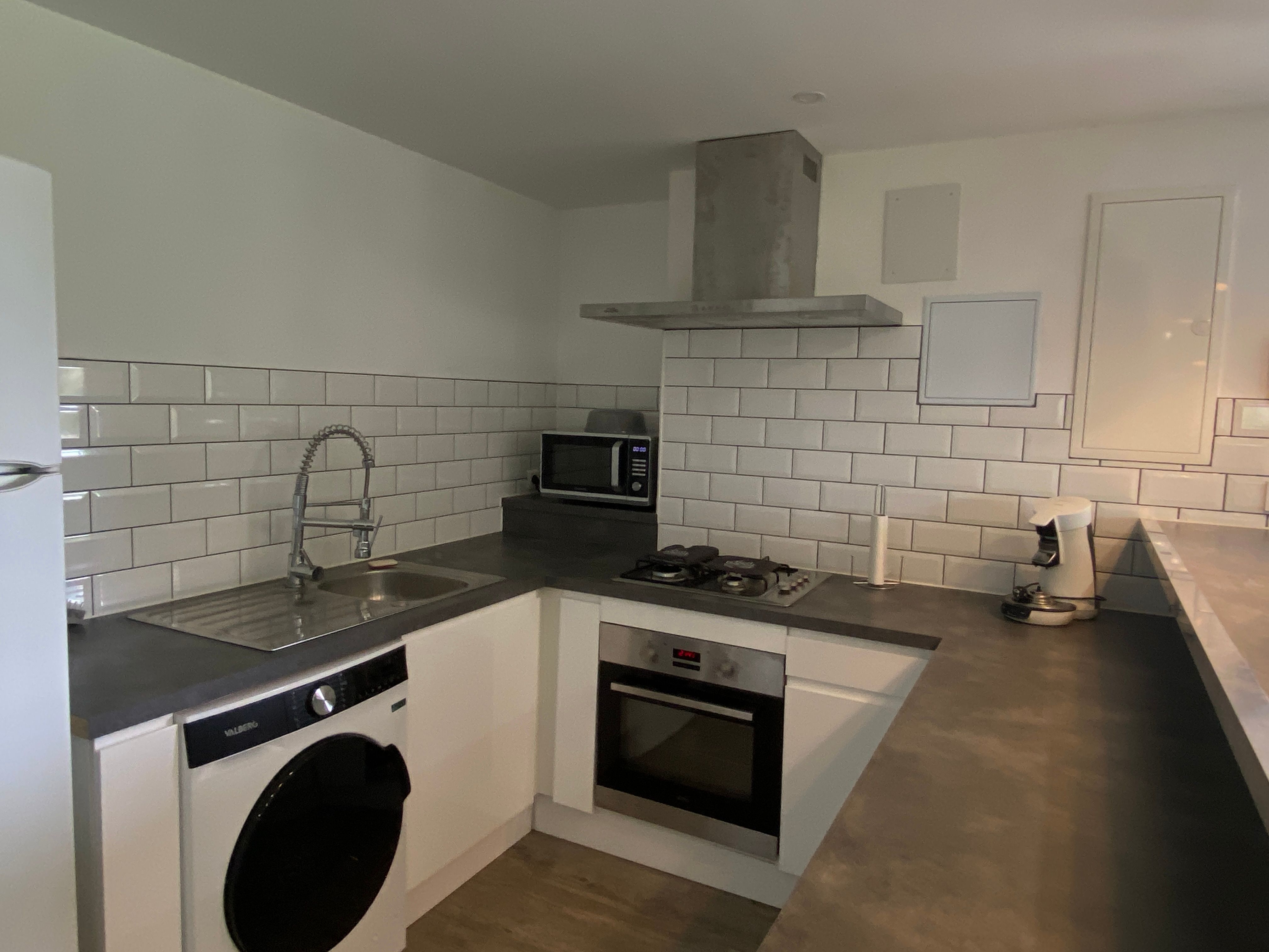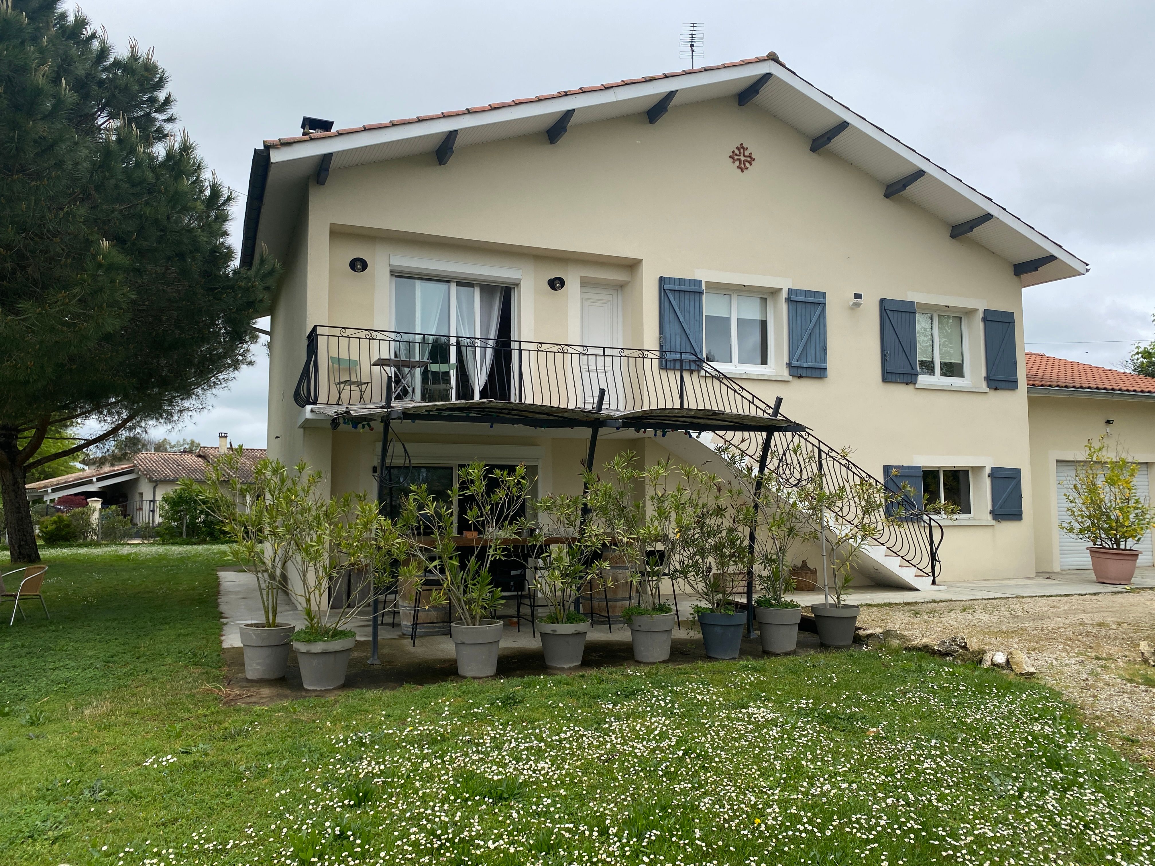 The accommodation comprises two interconnected areas, on the ground and ground floors, with all modern comforts. On the ground floor, there is a living room with a fitted kitchen (fridge-freezer, hob, oven, washing machine), table and chairs, corner sofa and TV. A bedroom (2 x 0.90cm beds), a bedroom (1 x 140cm bed) and a huge shower room with wc. Via an internal staircase and another external staircase, the 1st floor offers a large living room with fireplace (TV insert), corner sofa, dining area (table and chairs), and integrated kitchen area (cooking facilities, dishwasher, oven, microwave, fridge). Two bedrooms (2 single beds), one bedroom (1 double bed), shower room and separate wc. Balcony on first floor. Covered pergola with garden table and stools, string lights. Wifi throughout. Bed linen, towels and household linen provided and included in the price. Wood for the fireplace provided. Charcoal barbecue. Fenced garden with trees and gate. Bicycles can be stored at the rear.
