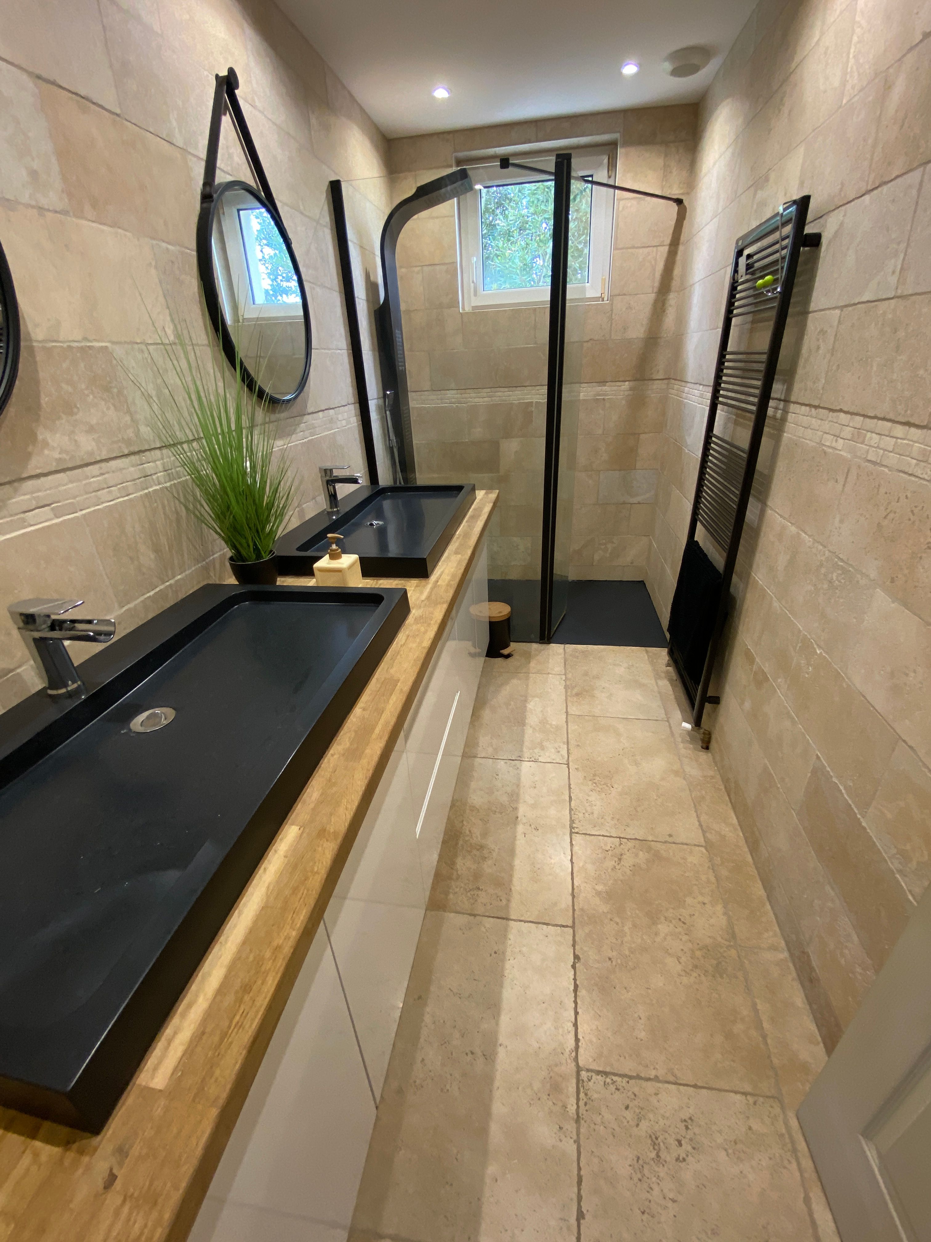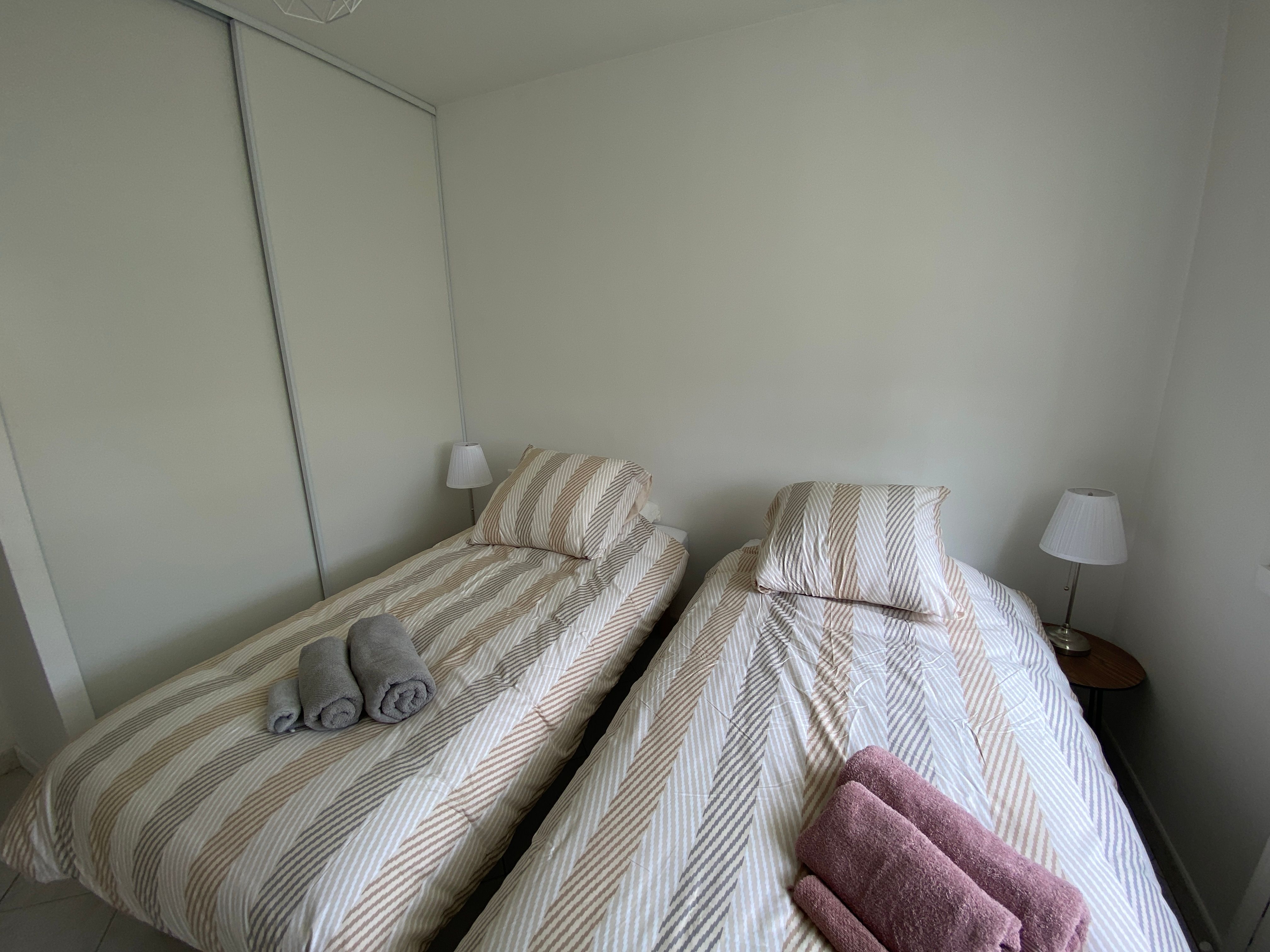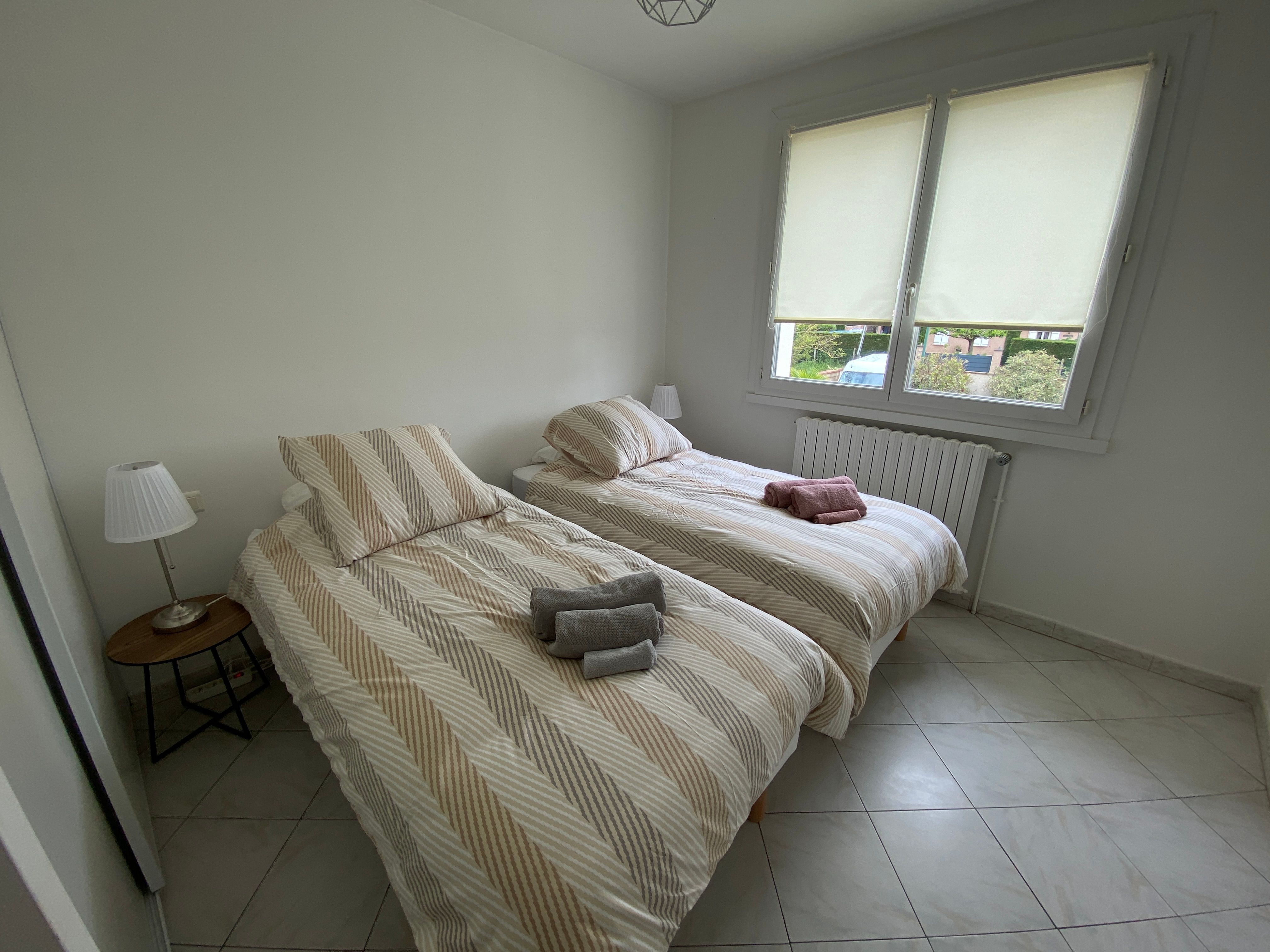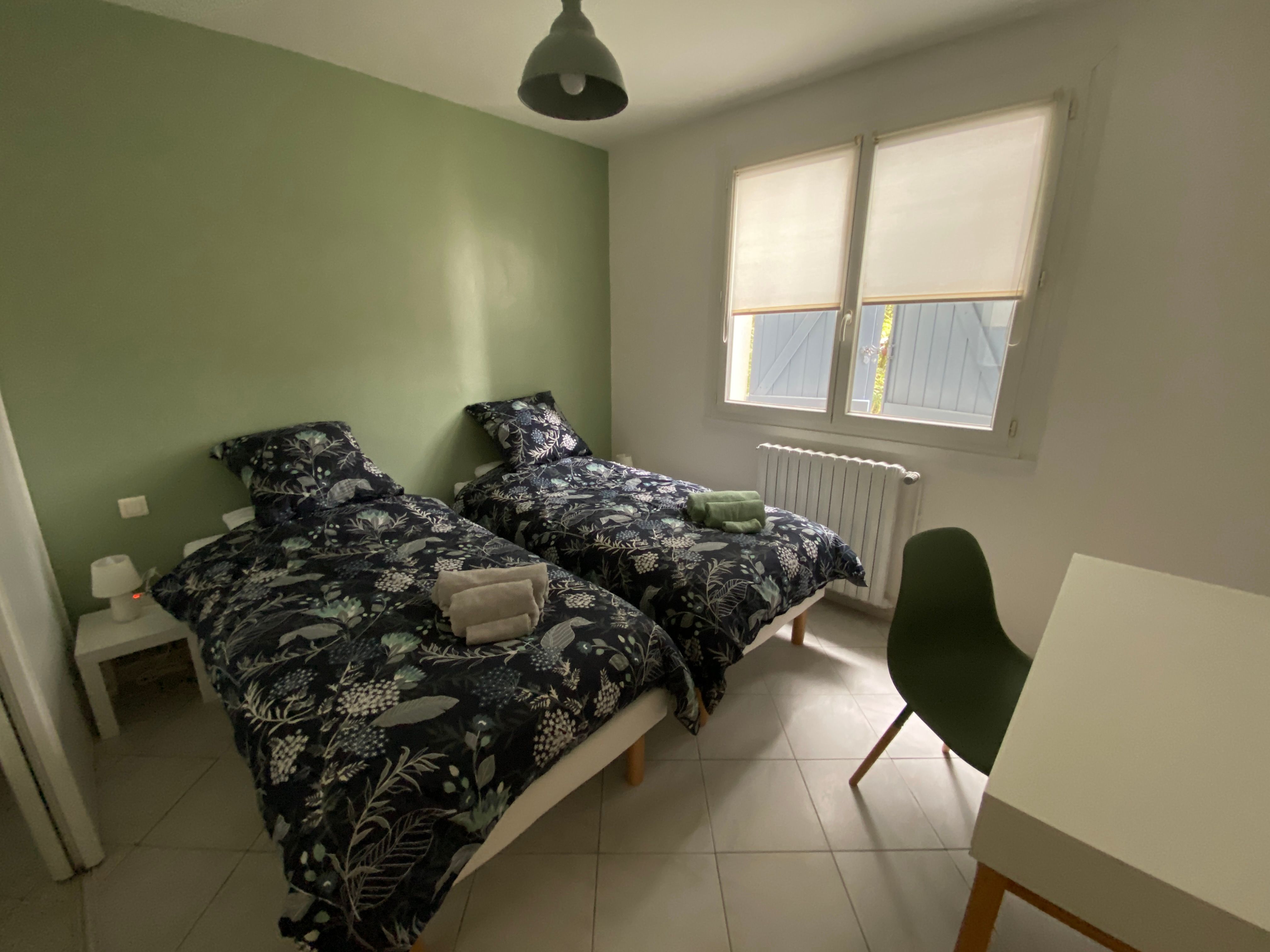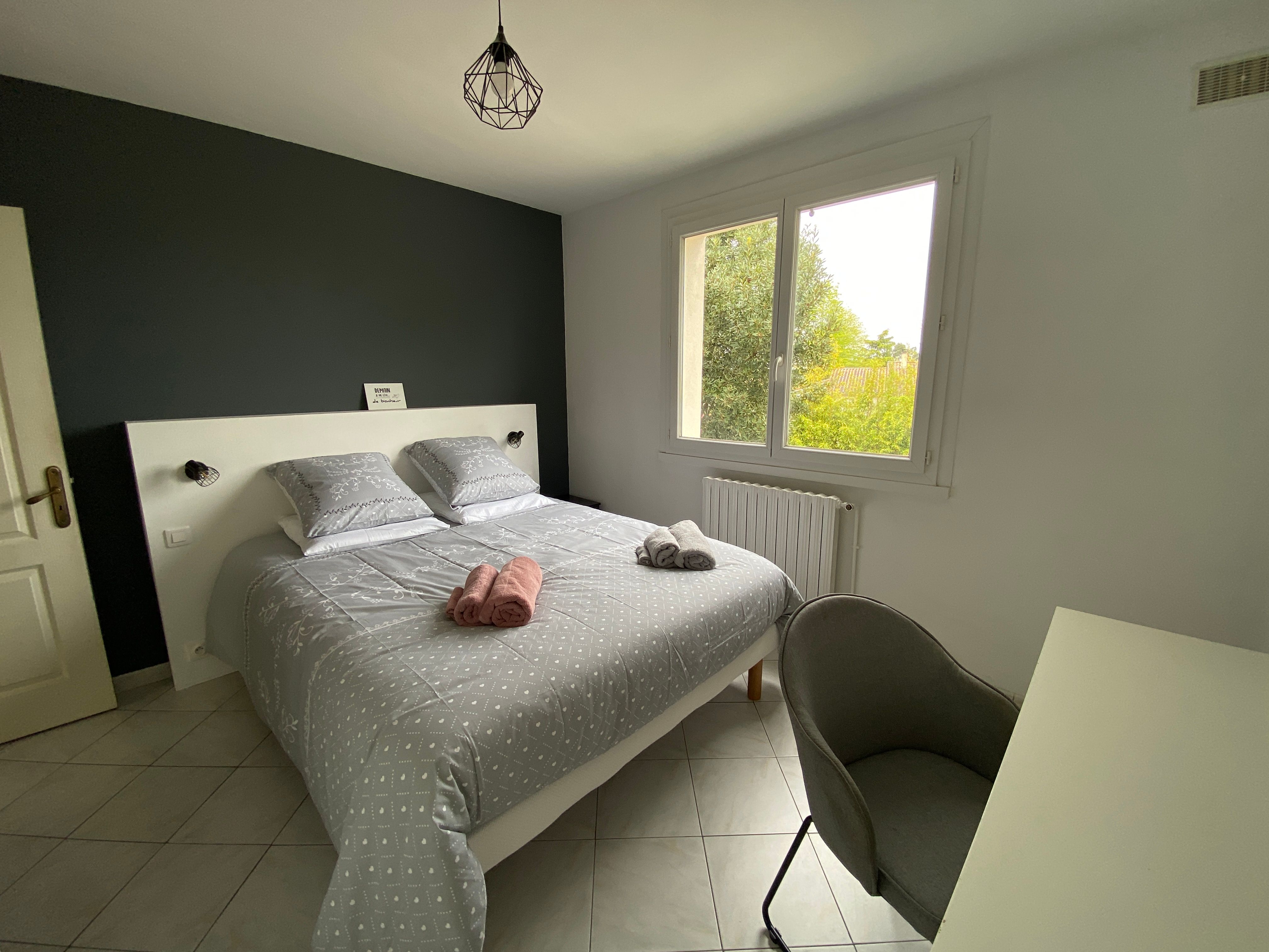 The accommodation comprises two interconnected areas, on the ground and ground floors, with all modern comforts. On the ground floor, there is a living room with a fitted kitchen (fridge-freezer, hob, oven, washing machine), table and chairs, corner sofa and TV. A bedroom (2 x 0.90cm beds), a bedroom (1 x 140cm bed) and a huge shower room with wc. Via an internal staircase and another external staircase, the 1st floor offers a large living room with fireplace (TV insert), corner sofa, dining area (table and chairs), and integrated kitchen area (cooking facilities, dishwasher, oven, microwave, fridge). Two bedrooms (2 single beds), one bedroom (1 double bed), shower room and separate wc. Balcony on first floor. Covered pergola with garden table and stools, string lights. Wifi throughout. Bed linen, towels and household linen provided and included in the price. Wood for the fireplace provided. Charcoal barbecue. Fenced garden with trees and gate. Bicycles can be stored at the rear.