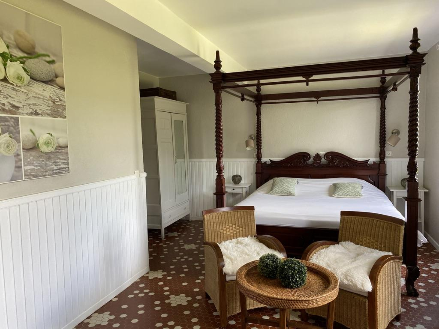 Magnifique parc, clos (1.5 hectare), parking privé. Belle piscine chauffée (fin mai – mi septembre) 12X6m. Table d’hôtes (4 fois par semaine).