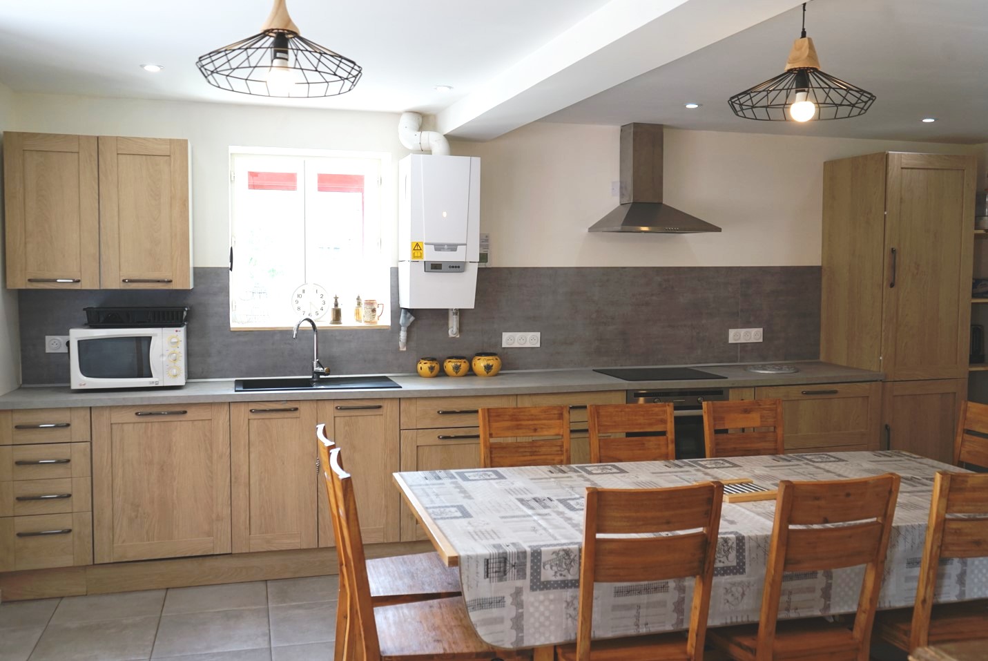 The house is perfectly adapted and optimised, with 4 bathrooms, 4 toilets, bedrooms with single and double beds, a large fully-equipped kitchen with dishwasher, fridge and oven, a living room and a utility room with washing machine and tumble dryer. a lounge and a laundry room with washing machine and tumble dryer.