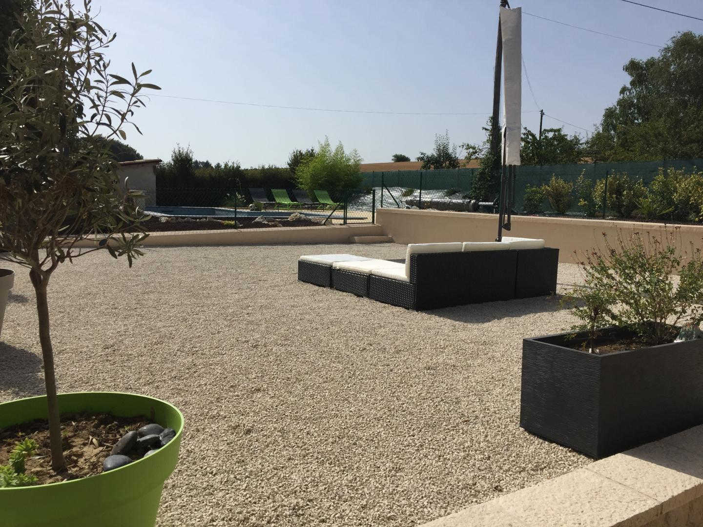 The guest house is designed for a maximum of 4 people, with no exceptions possible. It adjoins the owners’ home in the small wine-growing hamlet of Mas del Sol, in the heart of France’s oldest vineyard. Brand new, it welcomes its first holidaymakers this summer. Terrace/courtyard, heated swimming pool to share with the owners, large and pleasant covered lean-to, under which you can enjoy your meals sheltered from the heat or storms. Ground floor: living room, small fully-equipped kitchen, wc. Upstairs: two bedrooms (each with a 140x190cm double bed), shower room, wc. Bed linen and towels provided (except for weekend rentals), beds made on arrival. Cleaning service available at the end of your stay.