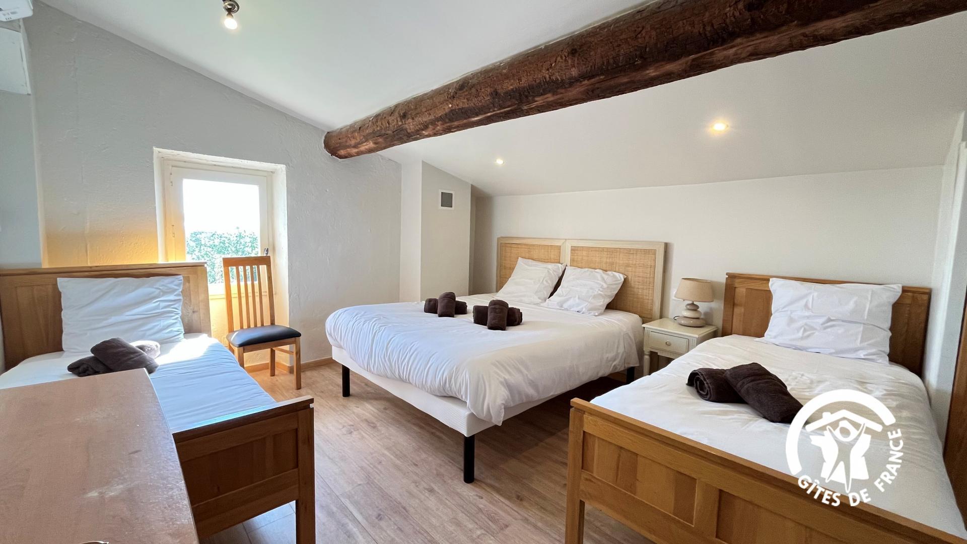 Welcome to Villelongue-dels-Monts, the perfect place to visit the Pyrénées- Orientales department. From the gîte, you’re just a few kilometres from the beaches of Argelès-sur-Mer. Access by staircase – Fully-equipped kitchen (oven, American-style fridge, dishwasher, washing machine, microwave, Nespresso coffee machine, crockery, etc.) – Bedroom 1 Master suite: 1 x 160×200 bed with en-suite shower room and WC – Separate WC After a few steps : – Dining room, wood-burning stove – Sitting room with terrace overlooking the Albères, TV, Wifi – Bedroom 2: 1 bed 160×200 + 2 beds 90×190 – Bedroom 3: 1 bed 160×200 – Bathroom with WC Adjoining the house, the studio with terrace comprises : – Fully-equipped kitchen (oven, microwave, dishwasher, coffee machine, fridge, crockery, etc.) – Lounge area, TV (access to terrace) – Bedroom 4: 1 bed 160×200 – Shower room with WC Parking on the property. Unenclosed garden. Swimming pool (size: 10 x 5; depth: 1.40m).