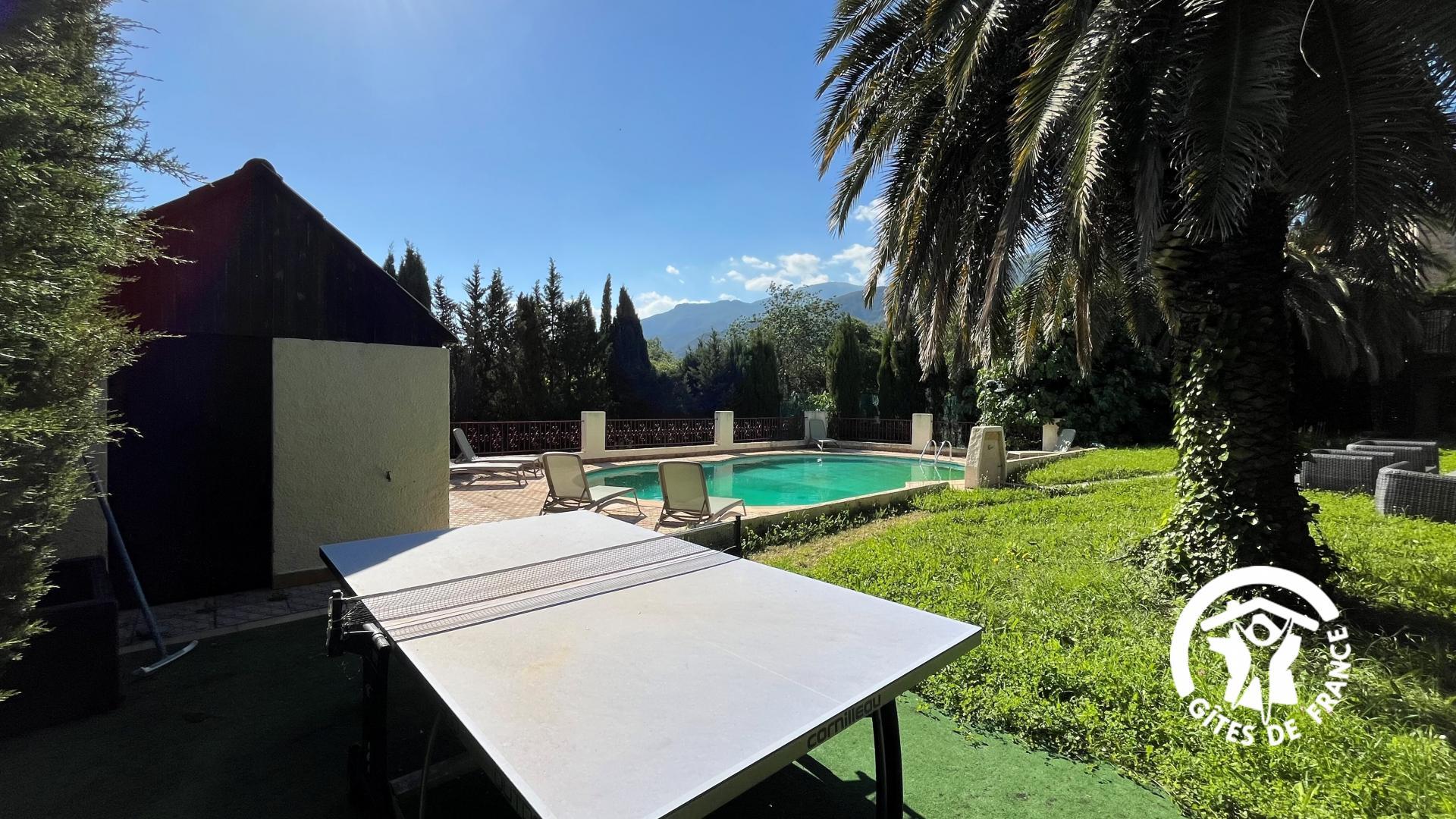 Bienvenue à Villelongue-dels-Monts, l’endroit parfait pour visiter le département des Pyrénées- Orientales. Du gîte, vous serez à quelques kilomètres des plages d’Argelès-sur-Mer, de la Côte Vermeille et de Collioure, vous pourrez visiter les villages typiques catalans comme Laroque des Albères et emprunter les sentiers balisés des Albères. Le Mas d’En Portes propose des gîtes authentiques et confortables dans un écrin de verdure d’ 1 hectare. Il y a 4 gîtes de 4 à 10 personnes, climatisés. 2 gîtes partagent une piscine et jardin. Les 2 autres gîtes ont chacun une piscine privative. Ce Mas de caractère, avec piscine privative et jardin se compose, au rez de chaussée : – Cuisine équipée – Salon – Terrasse avec vue dégagée sur le jardin – Chambre 1 : 1 lit 160×200 – Salle d’eau – WC Indépendant A l’étage : – Suite parentale avec salle de bain et WC – Suie parentale avec salle d’eau et WC – Chambre 2 : 2 lits 90×190 – Chambre double : 1 lit 160×200 – Salle d’eau av