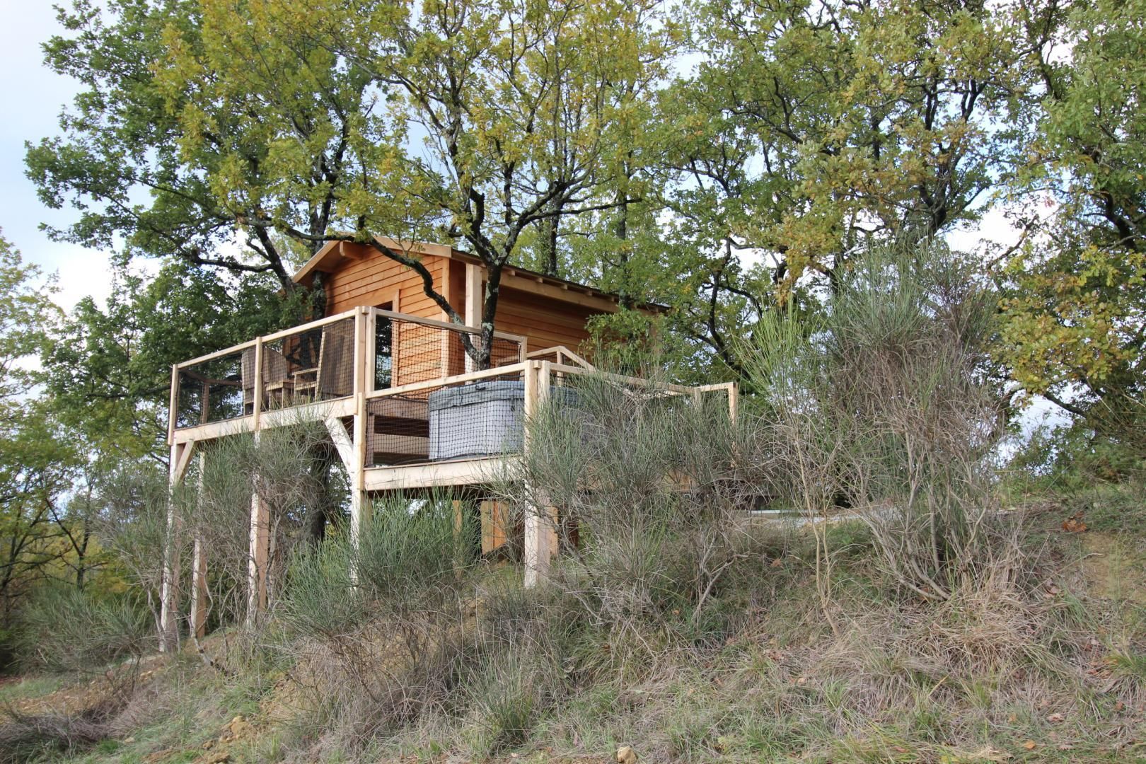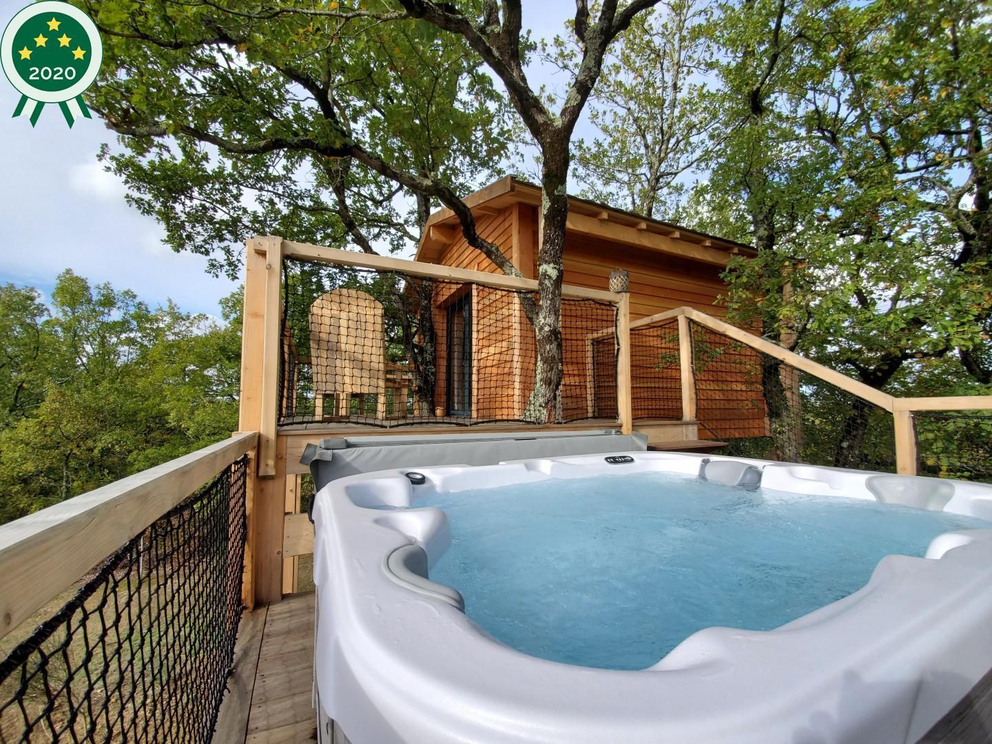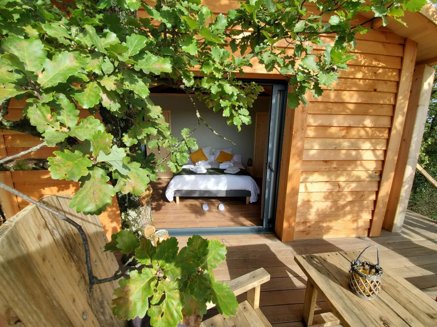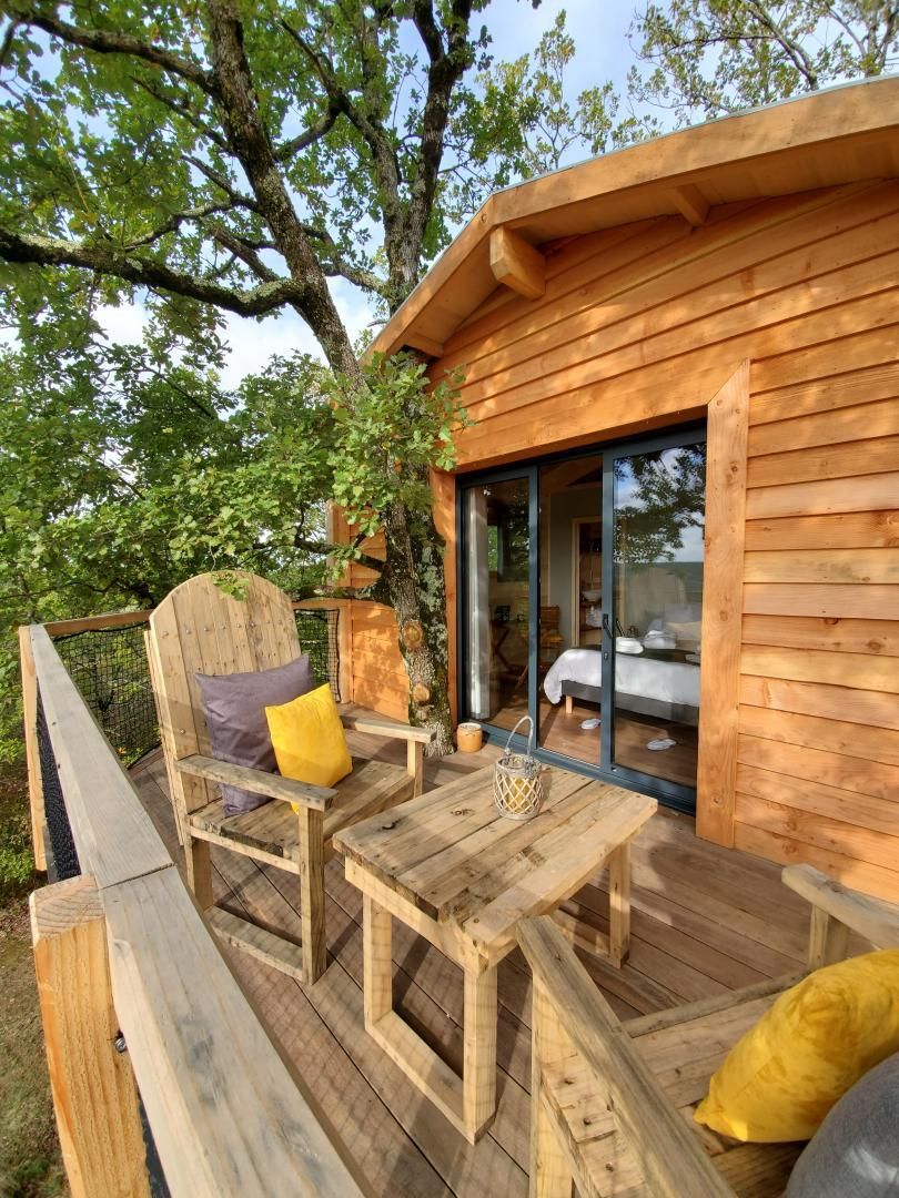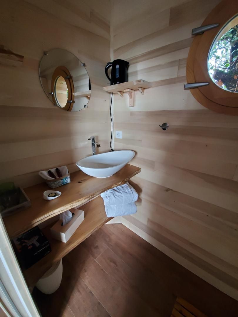 Perched in the trees of a Natura 2000 site, the “Orchis Spa” and “Ophrys Bulles” tree houses invite you to unwind in the heart of nature. Leave your car in the parking lot, enjoy a stroll through the meadow to reach the tree houses, and discover the breathtaking views of the Pyrenees mountains, the Gascon landscape, and the surrounding countryside. Each tree house has been perfectly integrated into the trees to minimize its impact. In an eco-friendly approach, lighting is provided by solar lanterns, and wastewater is treated using a phytoremediation system.
