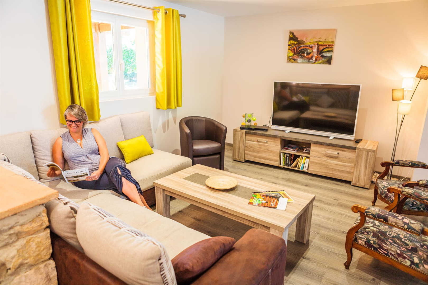 – séjour avec salon et TV, salle à manger et cuisine ouverte toute équipée : four, lave-vaisselle, réfrigérateur avec congélateur, micro-ondes, grille-pain, cafetière à filtre et à dosettes Nespresso, bouilloire…