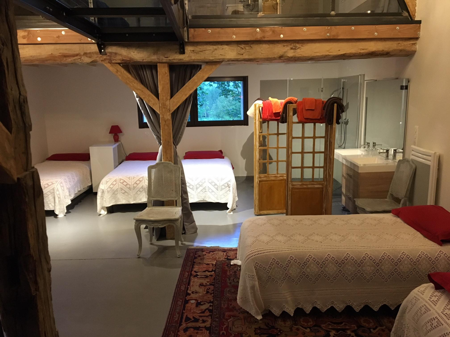 Doté de 15 couchages, ce gîte de 300 m² (+120m² de salle de jeux/musique) est aménagé pour votre confort, en pleine campagne dans une propriété de 6 ha. Il domine un verger de 2 500 m² où vous pourrez cueillir les fruits de saison, vous reposer dans ses nombreux hamacs à l’ombre des arbres avant de vous plonger dans la piscine toute proche.