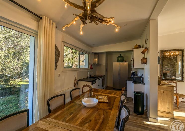 Sontuoso arredamento di montagna. Vista mozzafiato dal giardino. L’ampio soggiorno è il luogo ideale per rilassarsi dopo una giornata di sci o di escursioni. Dalla terrazza soleggiata si gode di una vista su Superbagnères e sulle cime che circondano Luchon. Ampio giardino recintato con alberi, un alto tavolo in pietra e un tavolo con panche in pietra all’ombra del cedro e di alti abeti! La casa si trova a 3 km dalla stazione sciistica di Superbagnères tramite la funivia e a 17 km da Peyragudes (o a 2 km dal bus navetta). Venite a scoprire i Pirenei e Luchon (in città: terme, sci, pesca, golf, ciclismo; nelle vicinanze: base di Antignac con rafting e canoa…). Accesso alla casa tramite tre gradini, ingresso, ampio e piacevole soggiorno luminoso con zona salotto, zona pranzo e cucina attrezzata che si apre sul soggiorno, camera “Art Populaire” (1 letto matrimoniale da 160 cm con bagno doccia: doccia all’italiana 140 x 90 / lavabo/WC), camera “Aux Oiseaux” (1 letto matrimoniale da 160 cm con bagno doccia, comunicante: doccia all’italiana 140 x 90 / lavabo/WC), camera “Art Populaire” (1 letto matrimoniale da 160 cm con bagno doccia, comunicante: doccia all’italiana 140 x 90 / lavabo/WC): camera “De L’herbier” (2 letti singoli da 90 cm, gemellabili) e camera “Explorateurs” di 10 m2 (4 letti singoli a castello da 90×200 cm), bagno con doccia in comune: doccia all’italiana 120 x 90/lavandino/WC. WC separato con lavabo. Lavanderia: lavatrice e asciugatrice, rastrelliera e scaffali per asciugare l’attrezzatura da sci o da trekking (radiatore elettrico). Garage per 1 auto, biciclette o moto. Traduction automatique par DeepL via DATAtourisme
