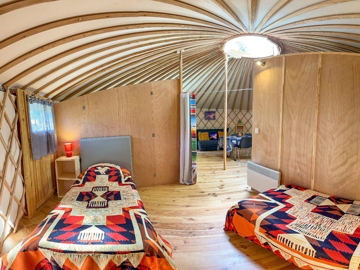 In the heart of the Montagne Noire mountain range, ideally located between Carcassonne (30 mins) and Mazamet (15 mins), the ‘Au bois de Mars’ residential leisure park is a place for relaxation, well-being and leisure. Come and take a deep breath of fresh air in the forest, enjoy refreshing walks on the many hiking and mountain-biking trails or simply relax by a large lake in an exceptional, unspoilt natural setting. You can also take advantage of the many places of interest less than 30 minutes from your accommodation, including the city of Carcassonne, the Cathar castles, the local vineyards, museums, the Hautpoul footbridge, the Cubserviès waterfall, medieval villages and much more… At your disposal 3 chalets (2 for 6/8 people and 1 for 4/6 people) 2 large ethnic yurts (for 4/6 people) 6 motorhome pitches with drinking water, waste water disposal and chemical toilets, container, electricity.