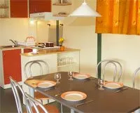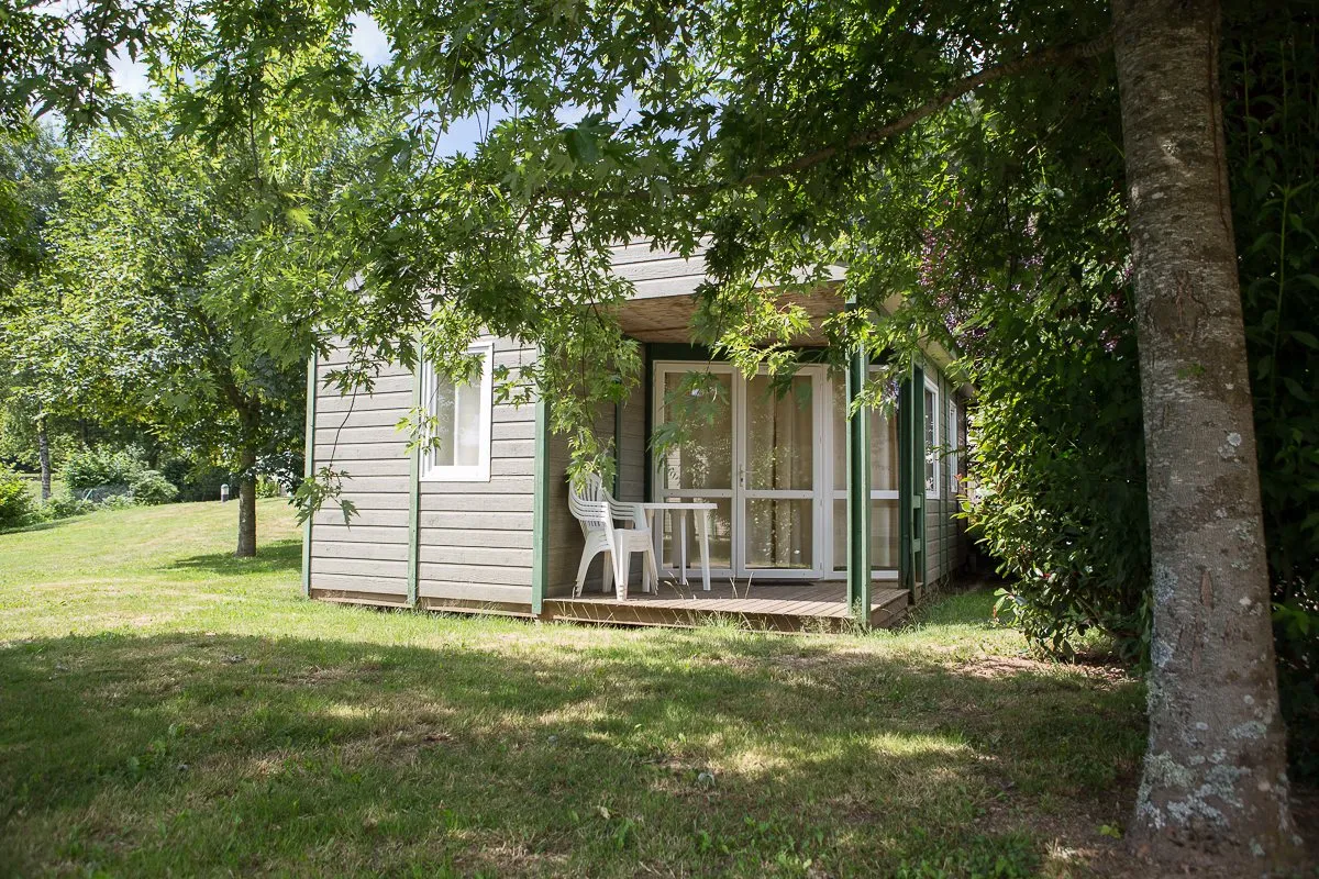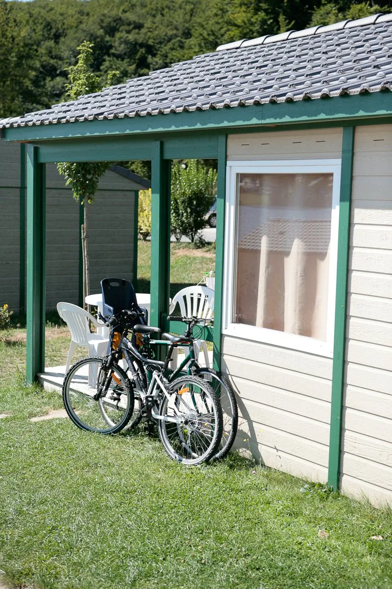 The chalets are equipped with all modern comforts. They feature a fully-equipped kitchen (hob, microwave), a living area with sofa and TV, and two bedrooms – one with a 140×200 bed and the other with three single beds (two on the floor and one bunk bed). A sheltered terrace with garden furniture opens onto a private outdoor area. One chalet is specially adapted for people with reduced mobility.