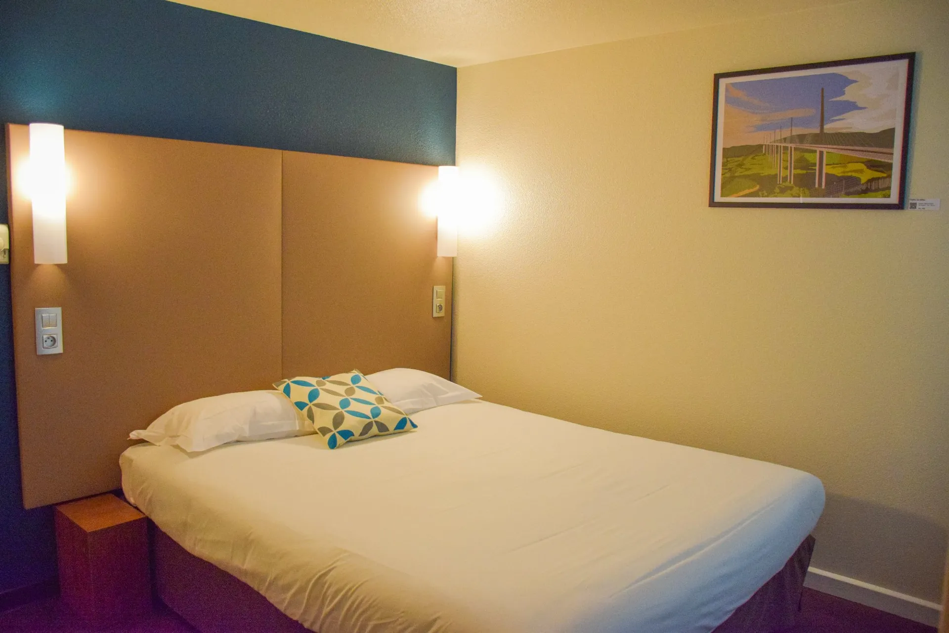 Located at the entrance to the town of Millau, two minutes from the famous viaduct, the hotel has 46 rooms, 2 of which are for people with reduced mobility, air-conditioned, has free Wi-Fi (fiber), enough to work serenely and in good conditions, in spacious rooms.