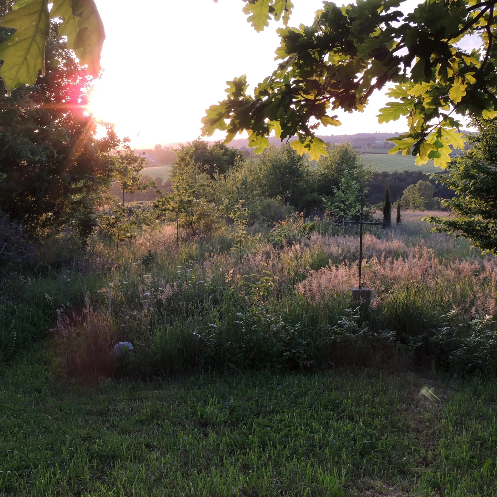 Depuis 2013, une ancienne pairie artificielle, très pauvre en espèces animales et végétales, est le lieu d’une expérience de jardin sauvage, où j’essaie avec le minimum d’interventions de développer un espace hybride, mi-spontané, mi-cultivé. Je plante, j’entretiens des allées pour faciliter la promenade, mais surtout j’accueille ce qui veut bien venir. L’esprit est celui du jardin punk d’Eric Lenoir, du jardin forêt de Robert Hart. Vous découvrirez le plaisir de circuler confortablement mais au milieu des herbes folles, dans un paysage qui a vocation à se refermer tout en conservant respirations intérieures et ouvertures sur l’extérieur.