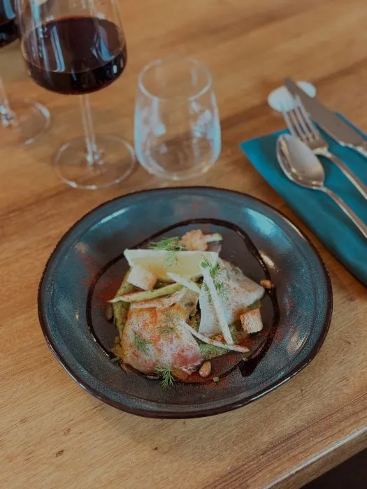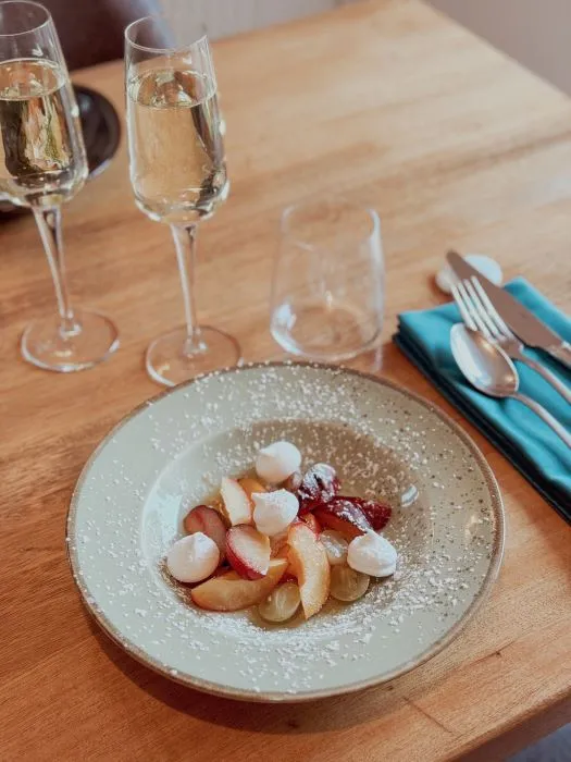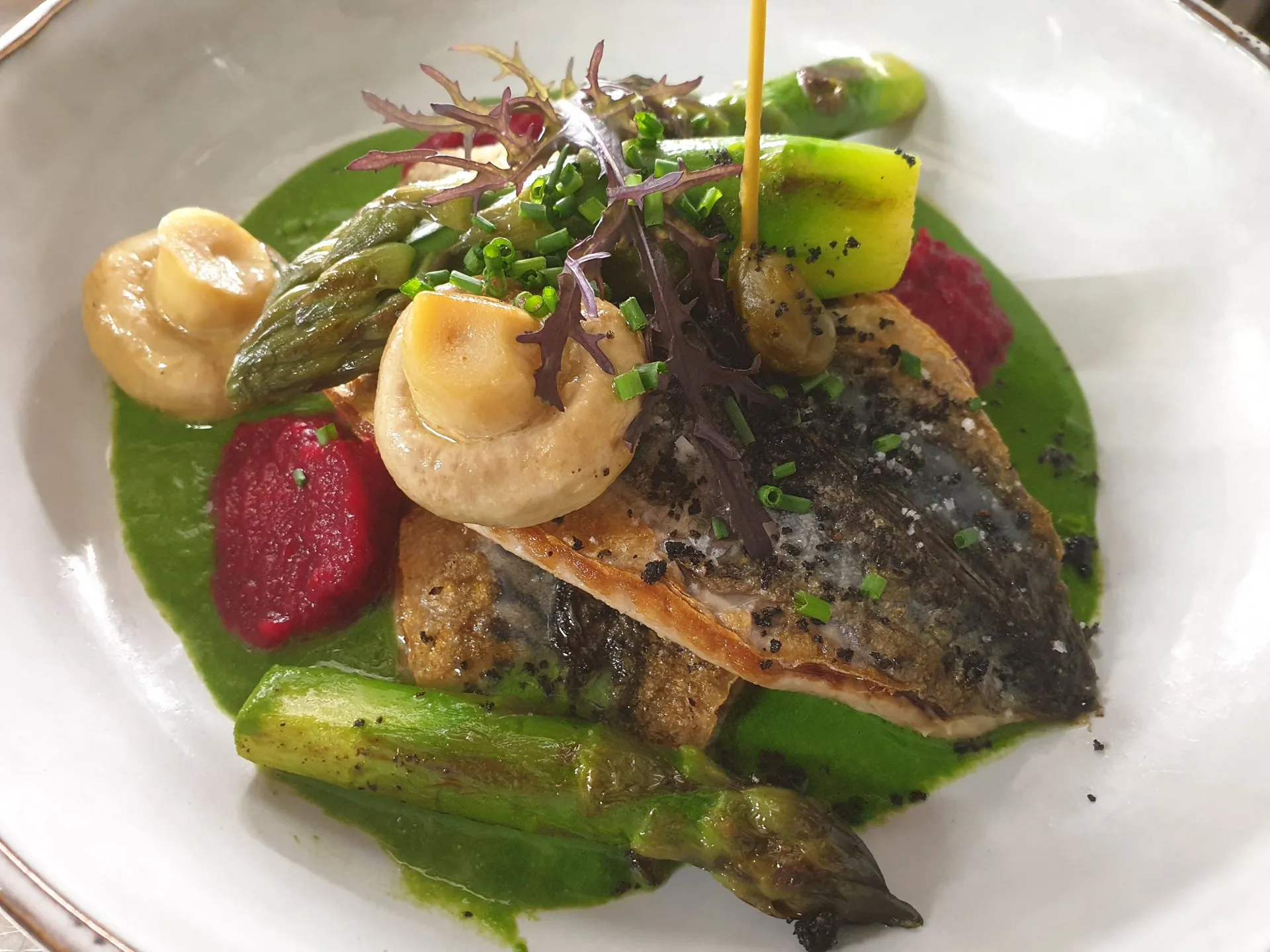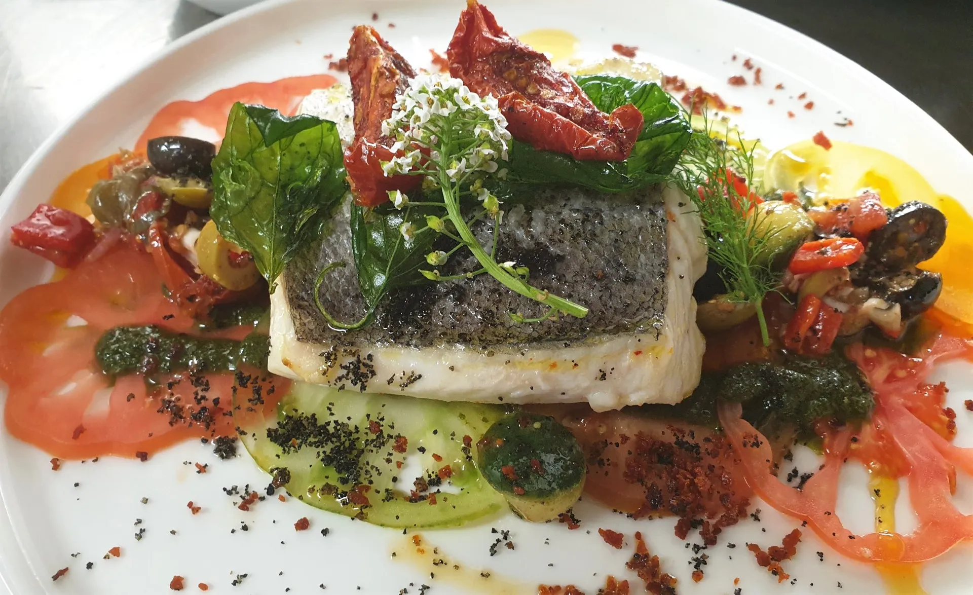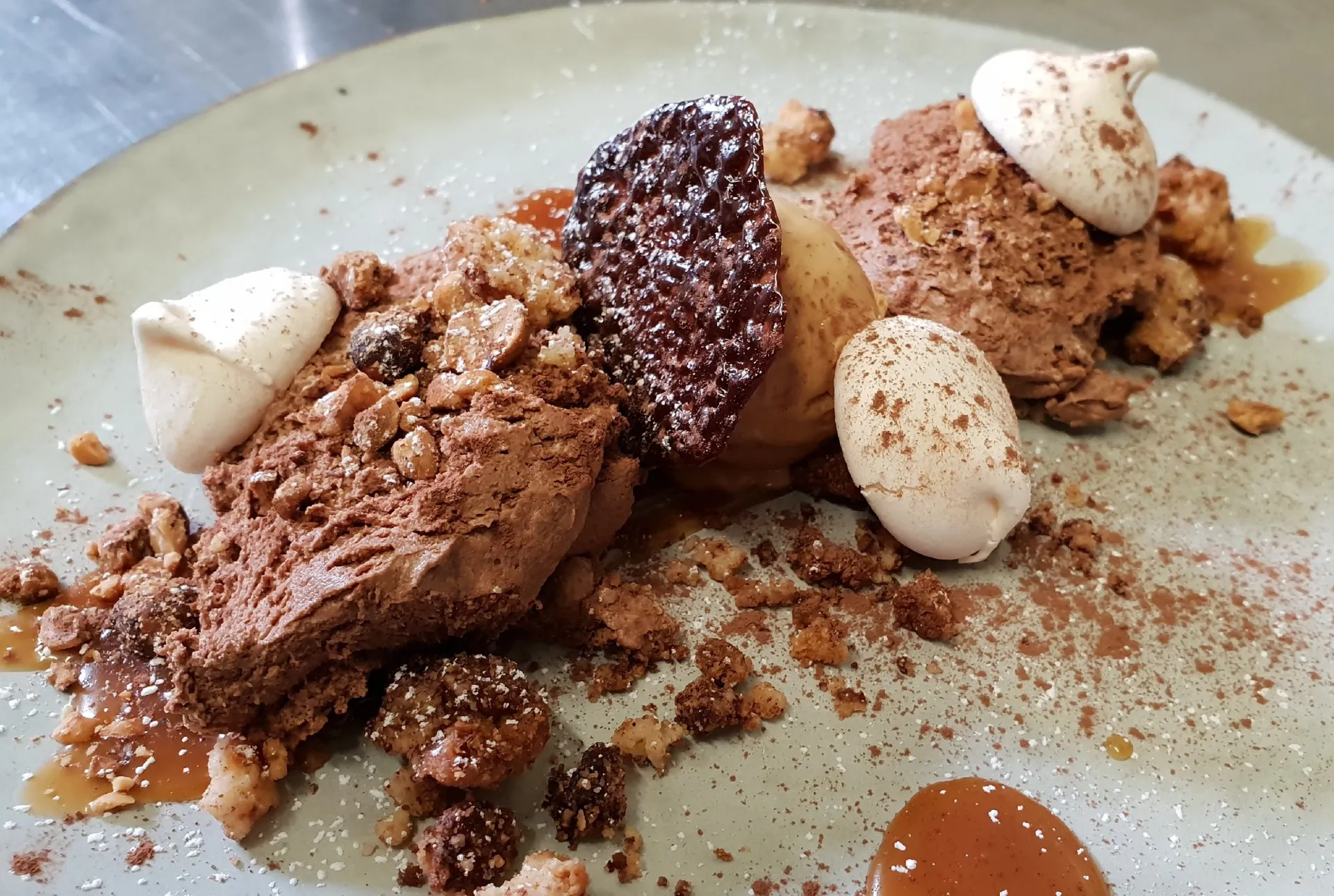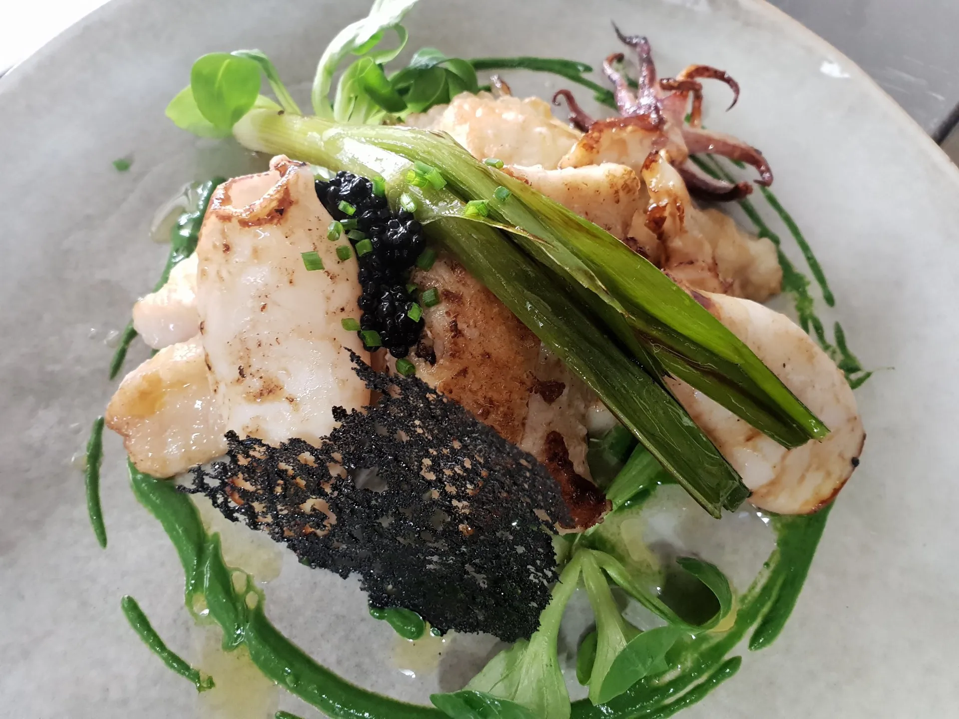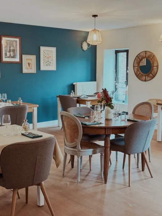 Cuisine entre terre et mer. Stéphane le chef de cuisine aime travailler les saveurs et associer les couleurs : Poulpe grillé à la plancha et boudin noir rôti, pieds de cochon panés, noix de veau à la sauge du jardin, poitrine de cochon confite à la bière…Les desserts sont alléchants : Choco croustillant praliné, pavlova aux figues, poire pochée à la vanille crumble aux amandes…Les circuits courts sont privilégiés pour vous proposer une cuisine locale, fraîche et savoureuse.