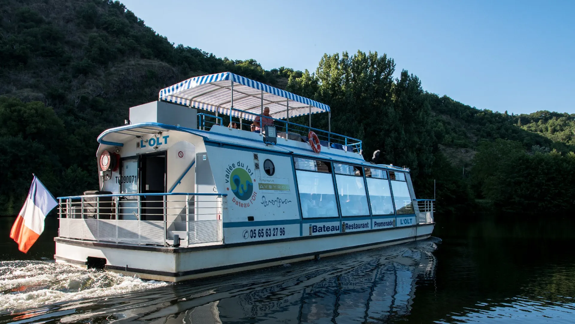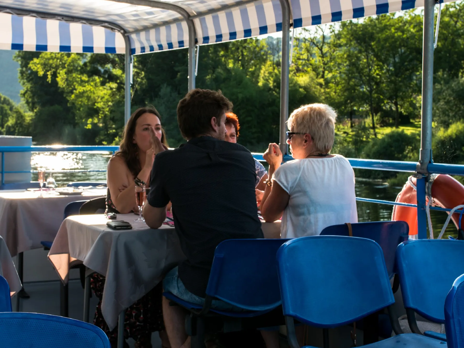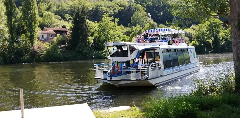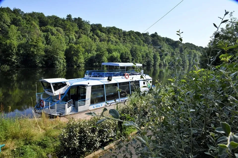 Leaving from Flagnac, boat trip and gourmet food discovering the river Lot, its beauty, the landscape of the Lot valley and local gastronomy.