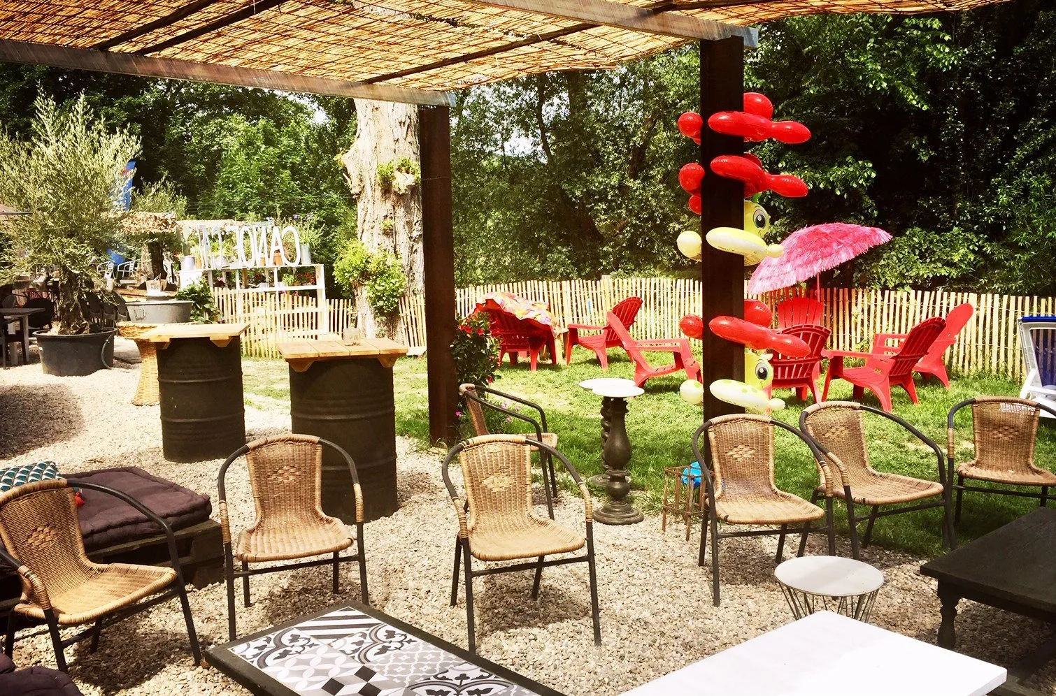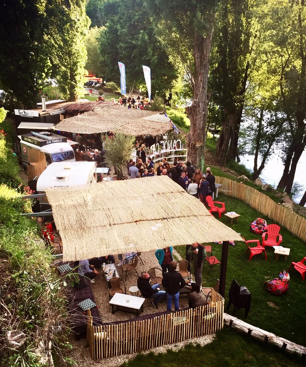 Espace de restauration convivial sous forme de food-trucks, avec buvette au bord du Tarn. Ambiance cosy et estivale, sur la base de loisirs Evolution2.