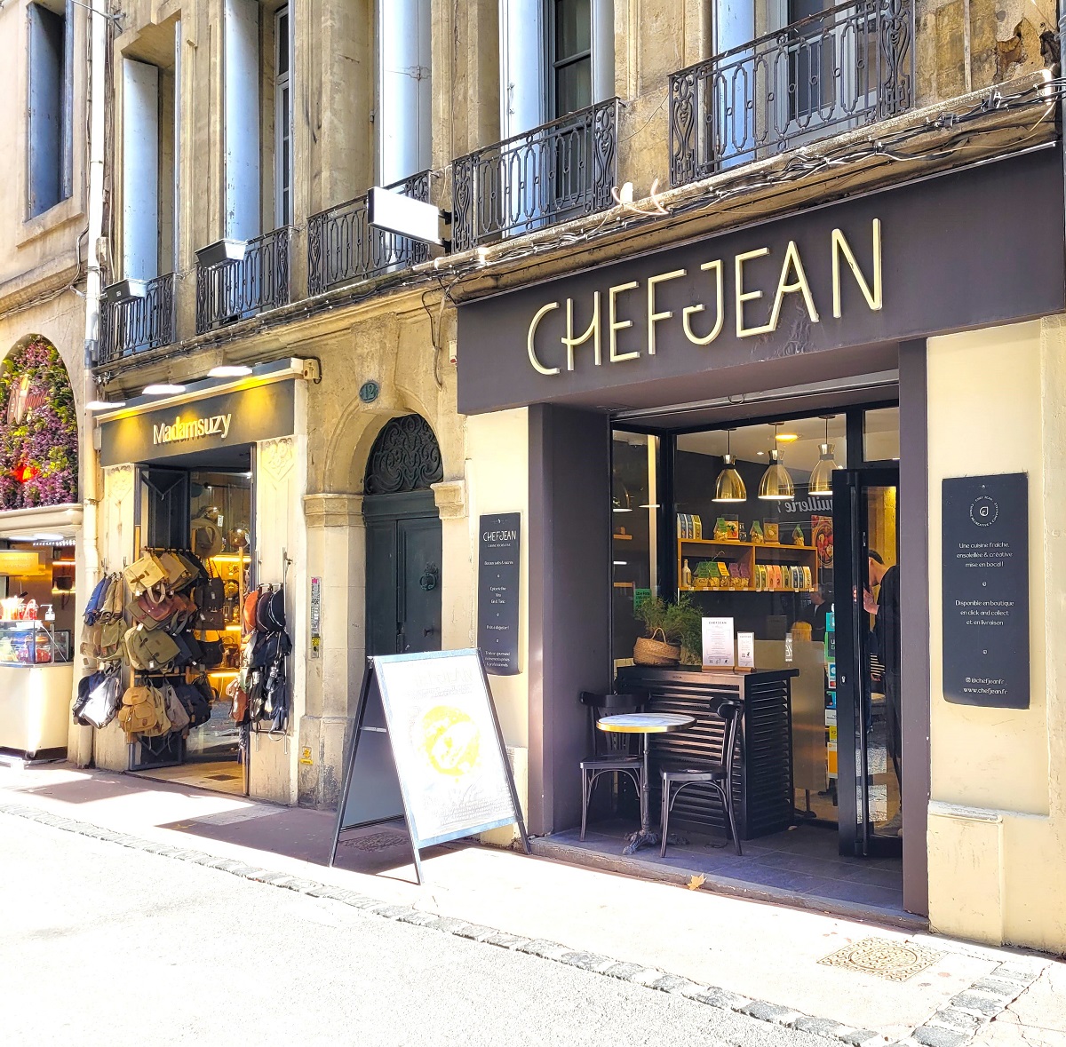 CHEFJEAN is a gourmet restaurant in Montpellier dedicated to homemade individual dishes, prepared using fresh, seasonal produce. New suggestions are added to the menu every day. All dishes are available directly from the refrigerators: customers are free to choose and compose their own menu according to their preferences. Salads, pasta and risottos, fish, meat, vegetarian recipes, and a wide selection of homemade desserts and pastries are available ready to eat, with no waiting or preparation time. The concept is simple and effective: help yourself, pay, and eat. A full menu with starter, main course, and dessert is available for €17.50, for a quick, high-quality, and friendly gourmet break in Montpellier. Five restaurants in Montpellier Since 2020, we have been creating welcoming spaces where our customers can eat, relax, and socialize. We offer healthy, gourmet vegetarian cuisine made from local, seasonal products. Click & Collect Ecusson Click & Collect Millénaire