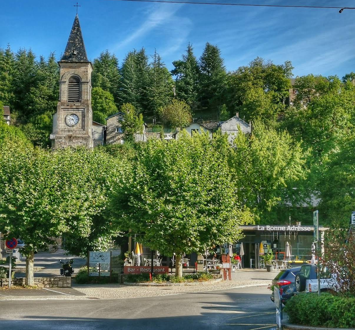 Ideally located on the village square in Lanuéjols, the café/restaurant “La Bonne Adresse” welcomes you all year round in a modern, outward-looking setting.