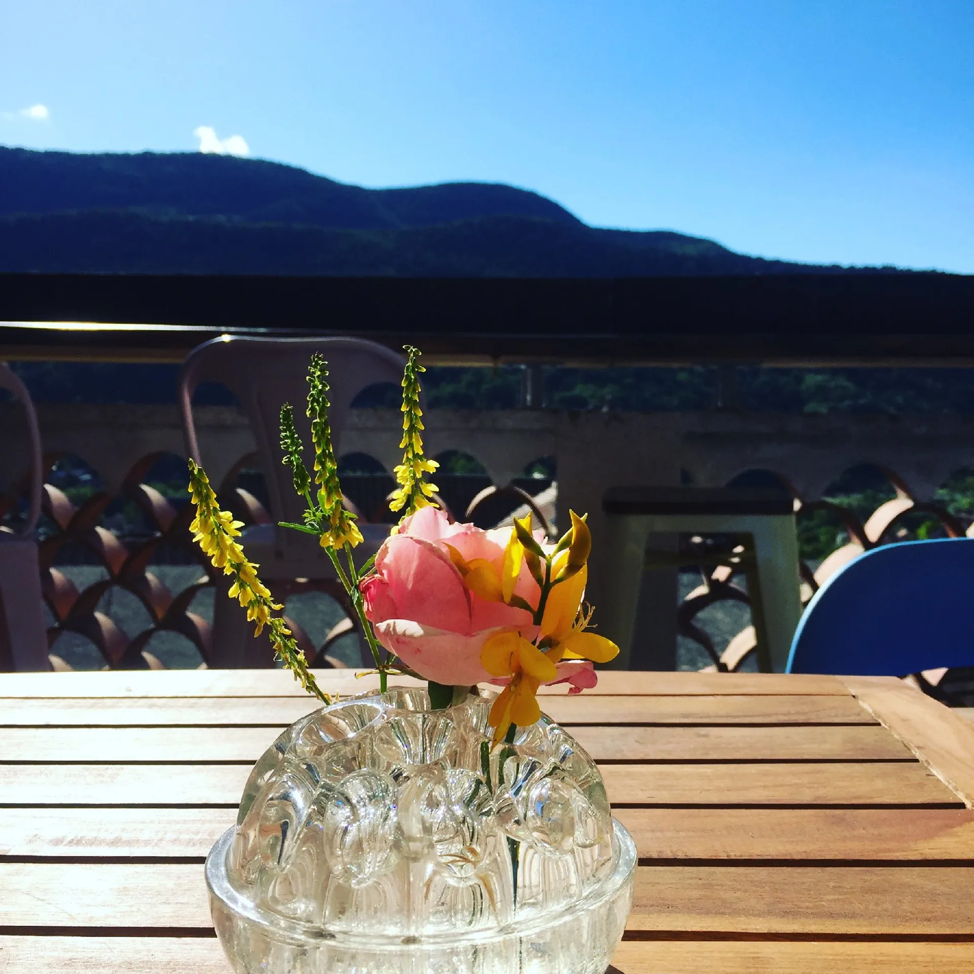 CANTINETTE PANORAMIQUE, en plein air, en terrasse couverte, ouverte à la belle saison. Pour un moment de gourmandise en toute convivialité. Une cuisine faite avec le maximum de produits locaux ponctuée de plantes aromatiques du jardin.