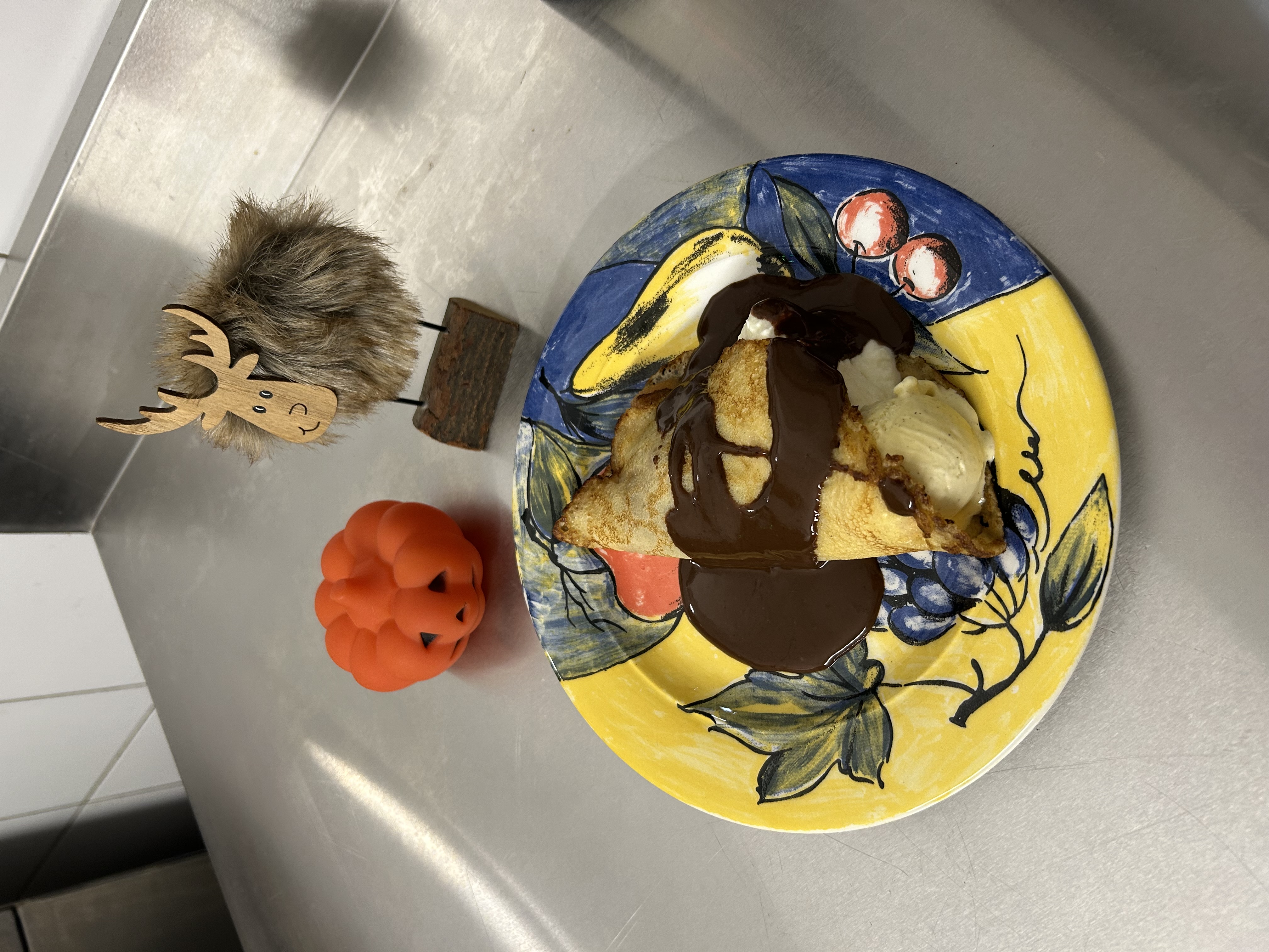 Tavola gourmet che esalta le specialità delle Cevennes in modo raffinato con prodotti locali, le verdure provengono dall’orto.