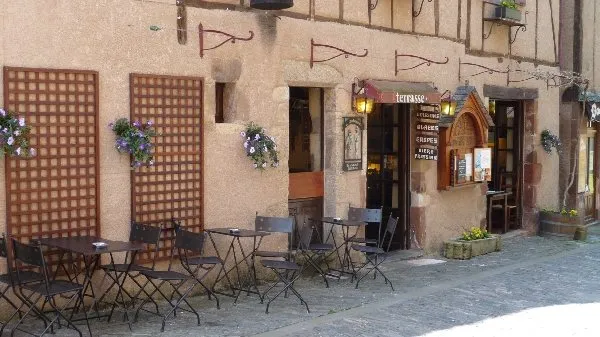 Café – Restaurant – Crêperie – Glacier – Au coeur du village médiéval, face à l’abbatiale de Conques.