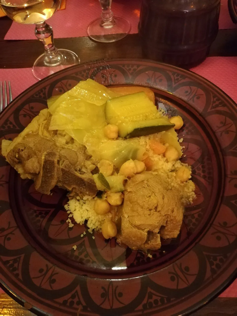 En centre-ville, un restaurant de cuisine traditionnelle marocaine : couscous, tajines… pâtisseries orientales.