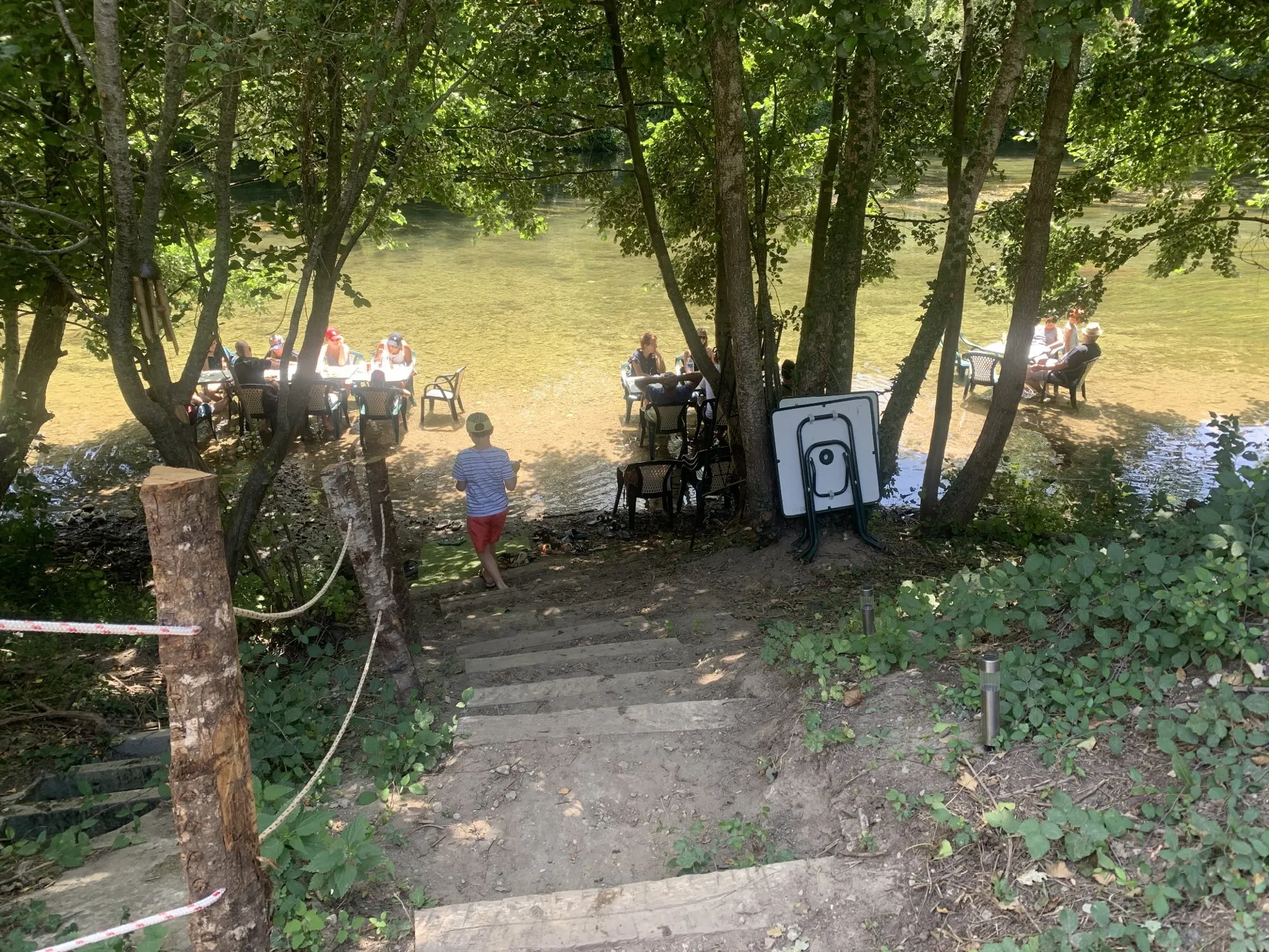 Guinguette au bord de la Dourbie. Détente et accès direct à la rivière, transats. Lieu insolite et nature pour un moment rafraichissant et paisible. Dégustez des produits frais et cuits au braséro, les pieds dans l’eau. Arrêt gourmand pour les canoës