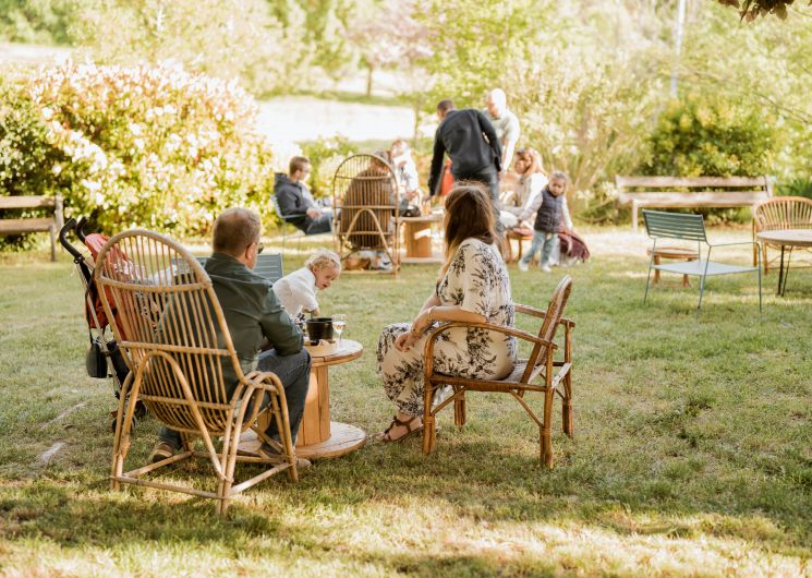 Summer guinguette. On-site food with brasero and food truck in a friendly atmosphere, with entertainment and live concerts.