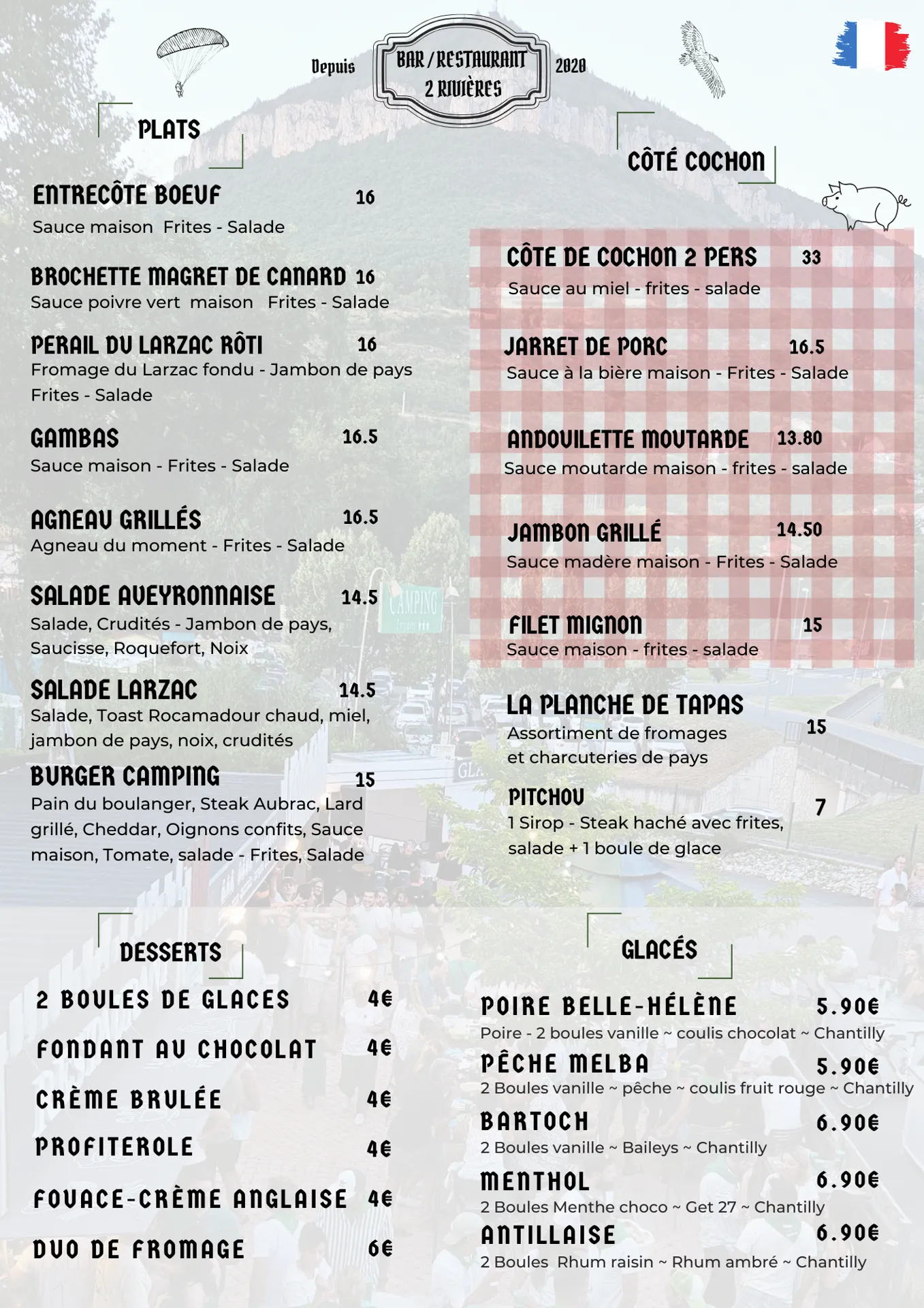 At the foot of the Pouncho, just a stone’s throw from the town centre, the 2 Rivières restaurant invites you to discover friendly, home-cooked cuisine. A varied menu of traditional dishes, local produce and child-friendly dishes.