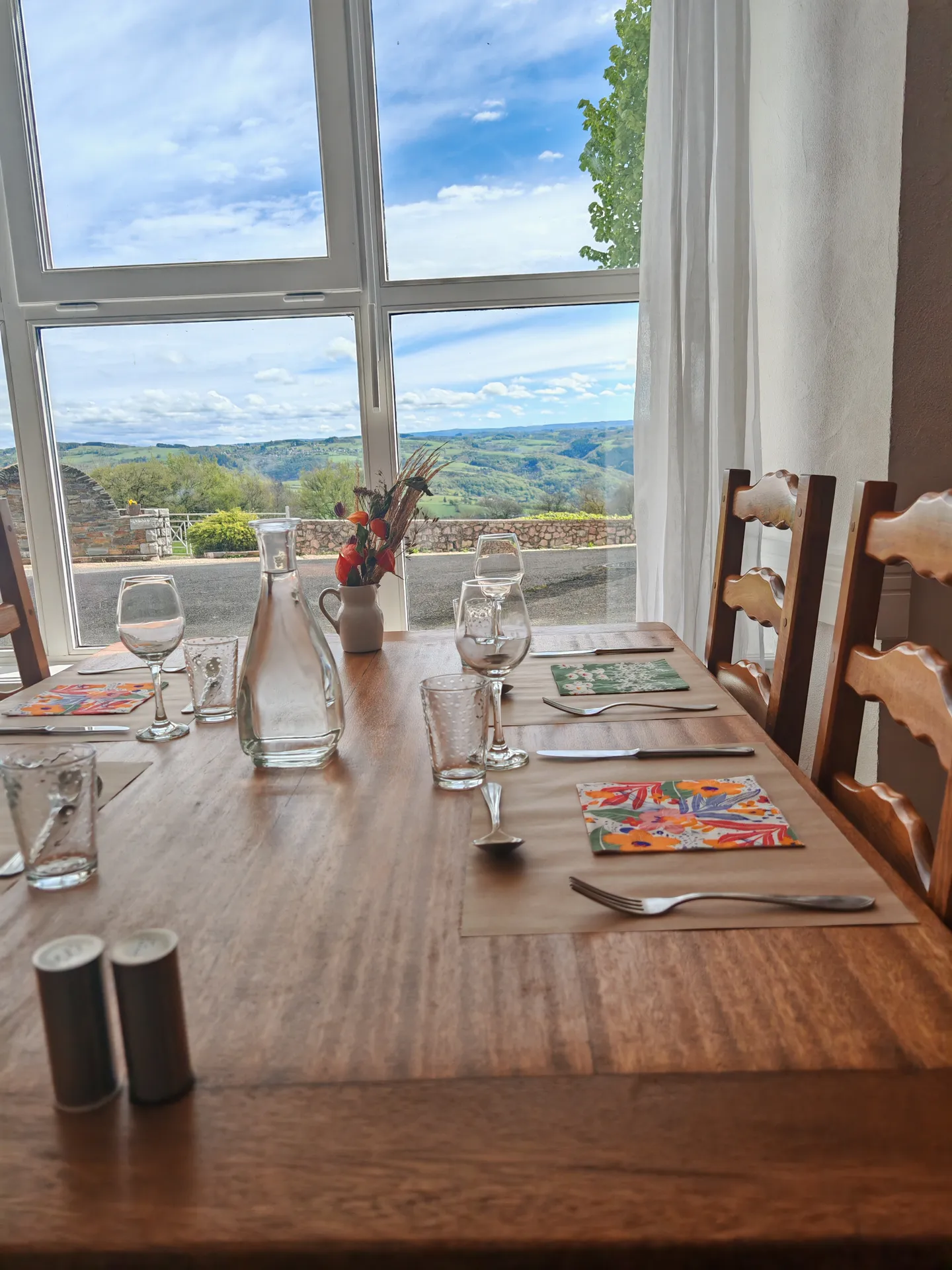 Restaurant located in the former presbytery of Golinhac (on the GR 65, pathway of St Jacques de Compostelle), magnificent views on the mounts of Aubrac and Cantal at 9 km from Entraygues and 15 km from Conques.