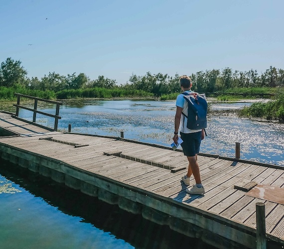 Sentiero didattico, ecomuseo, mostre: visitate La Marette, sede del Grande Sito di Francia Camargue Gardoise. Da lì, è possibile immergersi in questi paesaggi unici in Francia. Per secoli sono stati modellati dalle variazioni del livello del mare e dai cambiamenti nei letti del Rodano. Lagune d'acqua salata, paludi, stagni d'acqua dolce: questa vasta zona umida presenta una biodiversità eccezionale, riconosciuta di interesse europeo.
